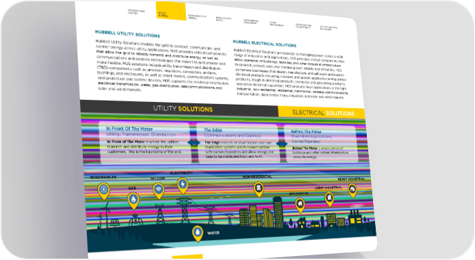 MESSAGE FROM ABOUT SUSTAINABILITY AT PRODUCTS WITH ENVIRONMENTAL SOCIAL GOVERNANCE AND GRI, SASB, AND TCFD OUR CEO HUBBELL HUBBELL IMPACT STEWARDSHIP RESPONSIBILITY ACCOUNTABILITY DISCLOSURES HUBBELL UTILITY SOLUTIONS HUBBELL ELECTRICAL SOLUTIONS Hubbell Utility Solutions enables the grid to conduct, communicate, and Hubbell Electrical Solutions are essential to managing power across a wide control energy across utility applications. HUS provides critical components range of industries and applications. HES provides critical components that that allow the grid to reliably transmit and distribute energy, as well as allow operators of buildings, factories, and other industrial infrastructure communications and controls technologies that make the grid smarter and to connect, protect, wire, and manage power reliably and e昀케ciently. HES more 昀氀exible. HUS solutions include utility transmission and distribution comprises businesses that design, manufacture, and sell stock and custom (T&D) components such as arresters, insulators, connectors, anchors, electrical products including standard and special application wiring device bushings, and enclosures, as well as smart meters, communications systems, products, rough-in electrical products, connector and grounding products, and protection and control devices. HUS supports the electrical distribution, and other electrical equipment. HES products have applications in the light electrical transmission, water, gas distribution, telecommunications, and industrial, non-residential, residential, commercial, wireless communications, solar and wind markets. transportation, data center, heavy industrial, and solar and wind markets. UTILITY SOLUTIONS ELECTRICAL SOLUTIONS In Front Of The Meter The Edge Behind The Meter Utility, Transmission, Distribution Communications and Controls Diversified Applications, In Front of The Meter is where the utilities The Edge consists of smart meters and com- Owner/Operator transmit and distribute energy to their munication systems which connect utilities Behind The Meter is where owners of customers. This is the backbone of the grid. with owners/operators and allow energy and buildings and other critical infrastructure data to be distributed back and forth. consume energy. RENEWABLES ELECTRICITY TELCOM NON-RESIDENTIAL HEAVY INDUSTRIAL GAS LIGHT INDUSTRIAL RESIDENTIAL WATER 8