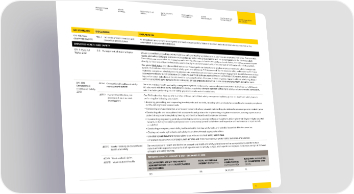 MESSAGE FROM ABOUT SUSTAINABILITY AT PRODUCTS WITH ENVIRONMENTAL SOCIAL GOVERNANCE AND GRI, SASB, AND TCFD OUR CEO HUBBELL HUBBELL IMPACT STEWARDSHIP RESPONSIBILITY ACCOUNTABILITY DISCLOSURES GRI STANDARD DISCLOSURE EXPLANATION GRI 406 Non- 406-1 Incidents of discrimination and All allegations are promptly investigated and handled appropriately. Status of incidents and actions taken are not reported as this discrimination 2016 corrective actions taken information is considered con昀椀dential. EMPLOYEE HEALTH AND SAFETY GRI 3: Material 3-3 Management of material topics We are committed to creating and maintaining a safe and healthy workplace and supporting our employees' wellbeing. Environmental, Topics 2021 health, and safety (EHS) are overseen and executed by both onsite EHS personnel and our senior leaders. At the site level, Safety Committees are responsible for managing and ensuring adherence to health and safety protocols. Safety Committee personnel report directly to their respective site leadership and indirectly to our EHS Council, which is comprised of EHS leaders from HUS and HES. Our global EHS Policy and internal EHS Instruction Manual guide our behavior and all sites employ a health and safety management system. Hubbell also establishes annual safety goals and utilizes an EHS Assessment Tool to measure safety metrics and performance related to completion of safety and risk assessments, corrective action closures, and employee engagement. The EHS Assessment Tool is complemented by a comprehensive EHS data management software solution that we use to track EHS reviews, metrics, and other key performance indicators at the site level for our global facilities. Moreover, Hubbell regularly engages with manufacturing alliance partners and third-party consultants to collaborate on best practices and current or emerging employee health and safety issues. GRI 403 403-1 Occupational health and safety Our sites maintain health and safety management systems reinforced by routine safety and compliance audits from our EHS Council. Occupational management system We also work with third-party consultants to analyze regulatory changes and risks pertaining to safety and environmental compliance, Health and Safety which includes performing routine safety gap assessments and risk evaluations. 2018 403-2 Hazard identi昀椀cation, risk Our EHS Instruction Manual, which all sites utilize as part of their safety management systems, guides our health and safety teams in assessment, and incident performing the following procedures: investigation • As sessing, preventing, and responding to safety risks and incidents, including safety protocols for conducting, for example, compliance audits, and ergonomic assessments • C onducting job hazard analysis prior to commencement of any job and implementing job rotation to prevent ergonomic-related injuries • C onducting site and occupational risk assessments and guidance for implementing mitigation mechanisms, covering aspects such as potential exposure to respiratory, hearing, and chemical hazards and dangerous processes • Implementing engineering c ontrols, administrative controls, personal protective equipment, and employee training to mitigate potential hazards, including lockout/tagout procedures to ensure equipment is shut down and inoperable until maintenance or repair work is completed • C onducting emergency mock drills, health and safety training, safety walks, and potential hazard identi昀椀cation exercises • Closing and r esolving incidents and safety observations through appropriate actions • De veloping and documenting new safety ideas with our site level Safety Committees • Implementing beha vioral campaigns, such as “Stop and Think” to encourage greater safety awareness and practices 403-5 Worker training on occupational Our employees are trained and briefed on occupational health and safety principles as well as work procedures speci昀椀c to their health and safety individual tasks regularly and prior to starting a new role or activity. In 2022, each operations employee received an average of 2.5 hours of health and safety training. 403-9 Work-related injuries REPORTING PERIOD: JANUARY 1, 2021 – DECEMBER 31, 2022 403-10 Work-related ill health OCCUPATIONAL SAFETY AND HEALTH TOTAL RECORDABLE EMPLOYEE DAYS AWAY, RESTRICTED, ADMINISTRATION (OSHA) INJURY/ILLNESS INCIDENT RATE (TRIR) HOURS WORKED OR TRANSFERRED RATE RECORDABLES (APPROXIMATE) (DART) 319 1.85 34,551,339 1.1 73