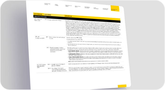 MESSAGE FROM ABOUT SUSTAINABILITY AT PRODUCTS WITH ENVIRONMENTAL SOCIAL GOVERNANCE AND GRI, SASB, AND TCFD OUR CEO HUBBELL HUBBELL IMPACT STEWARDSHIP RESPONSIBILITY ACCOUNTABILITY DISCLOSURES GRI STANDARD DISCLOSURE EXPLANATION EMPLOYEE EXPERIENCE GRI 3: Material 3-3 Management of material topics Our e昀昀orts to attract, engage, retain, and advance our talent are led by a comprehensive team of HR senior leaders dedicated to Topics 2021 helping our workforce 昀氀ourish. A crucial part of Hubbell’s employee experience is our commitment to developing our people. Across the enterprise and within our businesses and teams, there are a variety of ways we encourage our employees and leaders to learn on the job, in the classroom, through self-directed learning, or through a variety of leadership programs. Our primary employee development mechanism is Hubbell University, our company-wide learning management system that o昀昀ers a variety of educational resources and curricula. In addition, to support the health and wellbeing of our employees and their families, we provide comprehensive health, mental, and 昀椀nancial bene昀椀ts through our “myLife” program. We also partner with third-party employee bene昀椀ts organizations to further our employees’ access to mental, physical, and social support. Moreover, we believe that employees should be motivated to help the company succeed, and that they should share in that success. We provide market competitive compensation programs which are a mix between base pay and variable 昀椀nancial awards where appropriate. We also recognize and reward great contributors through Hubbell’s global “WIN AS ONE” program. This recognition program was established with the aim of reinforcing and expanding a performance- driven culture that celebrates success. 1 GRI 401 401-1 New employee hires and employee New hires (headcount/FTE): 6,828 Employment 2016 turnover 2 Employee turnover (as a ratio) : 32% 1. T his number is a global number of new hires (inclusive of joint venture employees) for year 2022 excluding contingent workers from temporary agencies and contractors. 2. Our 20 22 global turnover ratio does not include contingent workers and contractors. It also excludes following termination reasons (Death, Disability, Lay O昀昀s, RIFs, Retirement). 401-2 Bene昀椀ts provided to full-time Hubbell’s myLife program supports our global employees on their journey to health, wealth, and peace of mind. myLife bene昀椀ts, which employees that are not provided are available to full-time employees and part-time employees working at least 20 hours per week, include, but are not limited to: to temporary or part-time • Health Bene昀椀ts O昀昀ered: healthcare plans, health navigation, expert opinion, virtual care, subsidized on-premise cafes featuring healthy employees dietary options, diabetes and hypertension management, physical therapy, weight loss, fertility planning, and sleep support programs. • Wealth Bene昀椀ts O昀昀ered: competitive 401(k) plan, educational reimbursement, 昀椀nancial education, identity theft coverage, group legal plan, and employee discounts. • Peace of Mind Bene昀椀ts O昀昀ered: paid vacation, paid volunteer time o昀昀, paid sick time, paid parental leave, pet insurance, home and auto insurance, 昀氀exible work arrangements for greater work-life balance, and charitable and volunteering programs with company matching of employee donations. NOTE: Hubbell’s market-competitive bene昀椀t o昀昀erings vary by jurisdiction and in collectively bargained locations. GRI 404 Training 404-1 Average hours of training per 82,193+ learning hours were completed by employees globally in 2022 through Hubbell University and external training providers. and Education year per employee 2016 404-3 Percentage of employees 100% of our global salaried regular employee population received a performance review in 2022, excluding any employees who were receiving regular performance on a leave of absence. Our employees set objectives for the year in January with their managers, create individual development plans in and career development reviews March, and participate in regular update meetings throughout the year through continuous feedback. 74