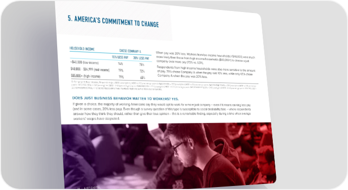 5. AmErIcA’s commItmEnt to chAngE HOUSeHOLD INCOMe CHOSe COMPANY A When pay was 20% less, Workers from low income households (