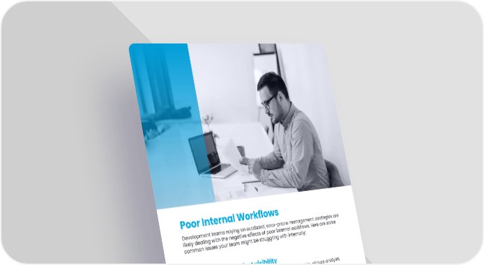 Poor Internal Workflows Development teams relying on outdated, error-prone management strategies are likely dealing with the negative effects of poor internal workflows. Here are some common issues your team might be struggling with internally: Low project visibility Developers often lack the capability to do big-picture analysis across a portfolio of projects, and as a result, cannot access real-time or historical data to inform decision-making on current projects. Projects can also benefit from relevant stakeholders, like engineers or other contractors, having eyes on relevant project data, allowing them to catch and prevent issues on-site. Lack of real-time cost tracking The real estate industry has been slow to adapt to the times, and many project managers still rely on ad-hoc spreadsheets for cost tracking. As a result, developers are unable to flag budget concerns and miss opportunities to make informed decisions. 08