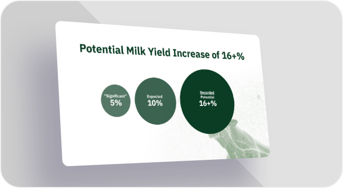 Potential Milk Yield Increase of 16+% Significant 5% Expected 10% Potential 16+%