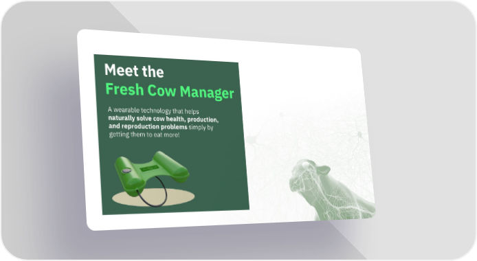 A wearable technology that helps naturally solve cow health, production, and reproduction problems simply by getting them to eat more! Meet the Fresh Cow Manager