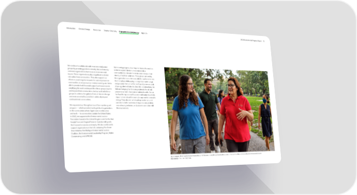 Introduction Climate Change Resources Smarter Chemistry Engagement and Advocacy Appendix 2023 Environmental Progress Report 72 We continue to collaborate with environmental justice We’re seeing progress, too. Hispanic Access Foundation groups by providing grants to minority-led and minority- works to support diverse Latino voices in their centered organizations that focus on environmental communities to advocate for environmental issues that issues. These organizations play a significant and vital directly affect their daily lives. Through our partnership, role within their communities. They also support our the organization was able to double the number of interns efforts to avoid negative impacts for underrepresented that it employs while paying a competitive market wage communities as we pursue our environmental goals. We’re and jumpstart the Latino Climate Council, a new network able to provide both financial support and assistance in of young, talented Latino leaders who are diversifying the amplifying the work and impact that these groups have in field and bringing frontline perspectives to the climate and beyond their communities. And we work with these justice movement. And representatives from the Center groups to address the global effects of climate change for Rural Enterprise and Environmental Justice traveled to and environmental hazards that traditionally impact Japan to learn about the country’s approach to renewable overburdened communities. energy. They also met with local representatives and partners to better understand Japanese perspectives We expanded our Strengthen Local Communities grant around equity, inclusion, and justice in connection with program — which provides funding to local organizations the environment. in the communities where Apple team members live and work — to communities outside the United States. In 2022, we supported the Environmental Justice Foundation based in the United Kingdom and the Karrkad Kanjdji Trust and Original Power in Australia with grants that focused on access and equity. We also continued to support organizations in the U.S., including The Green Door Initiative, the Michigan Environmental Justice Coalition, the Environmental Leadership Program, Native Conservancy, and UPROSE. Apple supports the Hispanic Access Foundation, which focuses on amplifying diverse Latino voices in their communities and advocating for environmental issues that directly affect their daily lives.