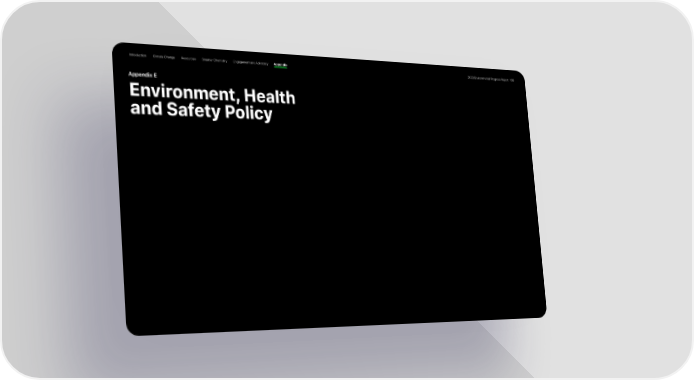 Introduction Climate Change Resources Smarter Chemistry Engagement and Advocacy Appendix 2023 Environmental Progress Report 108 Appendix E Environment, Health and Safety Policy