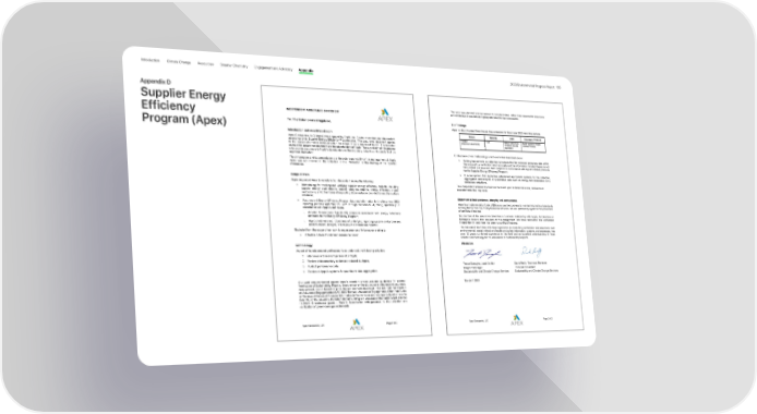 Introduction Climate Change Resources Smarter Chemistry Engagement and Advocacy Appendix 2023 Environmental Progress Report 105 Appendix D Supplier Energy The work was planned and carried out to provide limited, rather than reasonable assurance Efficiency INDEPENDENT ASSURANCE STATEMENT and we believe it provides an appropriate basis for our conclusions. To: The Stakeholders of Apple Inc. Our Findings Program (Apex) Apex verified Avoided Greenhouse Gas emissions for fiscal year 2022 reporting periods: Introduction and objectives of work Period Quantity Units Boundary / Protocol Apex Companies, LLC (Apex) was engaged by Apple Inc. (Apple) to conduct an independent FY2022 1.35 Million metric tons Apple suppliers / Apple assurance of its Supplier Energy Efficiency Program data. This assurance statement applies (9/26/2021-9/24/2022) of carbon dioxide Internal Protocol to the related information included within the scope of work described below. The intended equivalent users of the assurance statement are the stakeholders of Apple. The overall aim of this process is to provide assurance to Apple’s stakeholders on the accuracy, reliability and objectivity of the On the basis of our methodology and the activities described above: reported information. This information and its presentation are the sole responsibility of the management of Apple. ▪ Nothing has come to our attention to indicate that the reviewed emissions data within Apex was not involved in the collection of the information or the drafting of the reported the scope of our verification are inaccurate and the information included therein is not information. fairly stated and have not been prepared in accordance with Apple’s stated protocols for the Supplier Energy Efficiency Program; ▪ It is our opinion that Apple has established appropriate systems for the collection, Scope of work aggregation and analysis of quantitative data such as energy and associated GHG Apple requested Apex to include in its independent review the following: emissions reductions. ▪ Methodology for tracking and verifying supplier energy efficiency projects, including This independent statement should not be relied upon to detect all errors, omissions or supplier energy audit reports, supplier progress reports, energy efficiency project misstatements that may exist. verifications, and other forms of supporting documentation provided by suppliers where available; Statement of independence, integrity and competence ▪ Assurance of Energy Efficiency Program data and information for the fiscal year 2022 Apex has implemented a Code of Ethics across the business to maintain high ethical standards reporting period (September 26, 2021 through September 24, 2022), specifically, in among staff in their day to day business activities. We are particularly vigilant in the prevention accordance with Apple’s definitions: of conflicts of interest. o Avoided Greenhouse Gas (GHG) emissions associated with energy reductions No member of the assurance team has a business relationship with Apple, its Directors or attributed to the Energy Efficiency Program; Managers beyond that required of this assignment. We have conducted this verification o Appropriateness and robustness of underlying reporting systems and processes, independently, and there has been no conflict of interest. used to collect, analyze, and review the information reported. The assurance team has extensive experience in conducting verification and assurance over Excluded from the scope of our work is any assurance of information relating to: environmental, social, ethical and health and safety information, systems and processes, has ▪ Activities outside the defined assurance period. over 30 years combined experience in this field and an excellent understanding of Apex standard methodology for the Assurance of Sustainability Reports. Methodology Attestation: As part of its independent verification, Apex undertook the following activities: 1. Interviews with relevant personnel of Apple; 2. Review of documentary evidence produced by Apple; 3. Audit of performance data; Trevor Donaghu, Lead Verifier David Reilly, Technical Reviewer 4. Review of Apple’s systems for quantitative data aggregation. Program Manager Principal Consultant Sustainability and Climate Change Services Sustainability and Climate Change Services Our work was conducted against Apex’s standard procedures and guidelines for external March 7, 2023 Verification of Sustainability Reports, based on current best practice in independent assurance. Apex procedures are based on principles and methods described in the International Standard on Assurance Engagements (ISAE) 3000 Revised, Assurance Engagements Other than Audits or Reviews of Historical Financial Information (effective for assurance reports dated on or after Dec. 15, 2015), issued by the International Auditing and Assurance Standards Board and ISO 14064-3: Greenhouse gases -- Part 3: Specification with guidance for the validation and verification of greenhouse gas statements. Apex Companies, LLC Page 1 of 2 Apex Companies, LLC Page 2 of 2