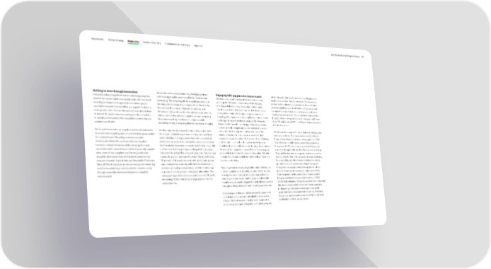 Introduction Climate Change Resources Smarter Chemistry Engagement and Advocacy Appendix 2023 Environmental Progress Report 54 Getting to zero through innovation We’ve also achieved reductions by developing thinner Engaging with suppliers to reduce waste which allows for third-party zero-waste verification at a Innovation plays a significant role in advancing progress stretch wrapping film used on pallets for final product We work closely with our suppliers to realize our zero- systems level rather than at a site level. The assurance toward zero waste within our supply chain. We use novel packaging. This wrapping film is a significant portion of waste goals. This work faces a range of challenges, procedure has allowed us to accelerate the verification recycling strategies and approaches to divert greater the virgin plastic usage in our supply chain. The thinner including a lack of access to recycling technologies, process significantly and establishes a new model that quantities of waste from landfill in our supplier facilities at film reduces the amount of plastic needed by up to the absence of local infrastructure, and the lower value companies across industries can employ to verify zero- even greater rates. But we also pursue material solutions 50 percent . We’ve shared the formula for our proprietary of recyclable material that impacts the economics of waste programs at scale. This streamlined approach has to impact the waste streams coming into these facilities thinner stretch film with our suppliers’ current wrapping recycling. We engage with our suppliers to address these brought even more suppliers into our program, with more to simplify and maximize the recyclable content that our film vendors to help accelerate its adoption while challenges through knowledge sharing. The Waste to than 150 validated in 2022 — a 50 percent increase from suppliers work with. producing stronger wrapping films for product packaging. Resource database that we designed provides access the previous year. 72 to available technologies and local recyclers that we’ve We’ve partnered with our suppliers and local businesses Another opportunity for waste reduction is to decrease collected from the suppliers that we work with. The We also provide support for our suppliers in verifying their to create new recycling options and develop opportunities the amount of plastic tape used on our production lines — database provides information on more than 1000 zero-waste efforts. The foundation of our Zero Waste for material reuse. Recycling and reuse provide and to develop a stronger paper tape that can act as an resources across more than 177 cities in China, Thailand, Program since launch has been following the UL 2799 environmental benefits and can help our suppliers alternative. An audit of our production processes showed and Vietnam — a number that grows as we and our Zero Waste to Landfill Environmental Claim Validation increase material efficiency while reducing the costs that the plastic tape used to secure parts before assembly suppliers share valuable resources through the database. Procedure (ECVP), which requires at least 90 percent associated with material waste. At final assembly supplier is often mixed with paper tape, making it difficult to sort As more of our suppliers achieve their zero-waste goals, diversion through methods other than waste-to-energy. sites, more of our suppliers use the recyclable and and divert from landfill to a recycling process. And in many we’re able to learn and share more information. We plan Through this standard, our supplier facilities can certify reusable alternatives that we helped develop for key cases, the plastic tape wasn’t needed. We found that for to make this resource public for the benefit of the entire against clear benchmarks for waste diversion, including sources of waste. In particular, our Recyclable Protective 75 percent of the parts secured with plastic tape, paper electronics industry. Platinum, Gold, and Silver levels of verification. We’ve Films (RPFs) that protect products during manufacturing tape could perform equally well. We then worked with spent the last seven years expanding this program and the reusable trays used to deliver modules safely an industry-leading tape producer with the technology Reducing waste is an ongoing collaboration between us throughout our supply chain, with suppliers in China, through assembly sites have helped our suppliers to produce a strong, lower-cost paper alternative. This and our suppliers and recycling vendors. We’re actively India, and Vietnam becoming UL validated. In 2022, reduce waste. new paper tape alternative was put to use for 200 parts, sharing best practices and innovative approaches to Thailand joined that list when a local Apple supplier eliminating 1200 m etric tons of virgin plastic from our reduce waste; and we’re matching our suppliers with became the first in the country to receive UL 2799 waste streams. capable recycling technologies that help eliminate waste ZWTL Gold validation. Since we switched from individual throughout the process of manufacturing our products. site verification to system-level verification, suppliers participating in the assurance program can easily One example of this is a tool developed by Apple and apply their verification statements from UL. Following UL Solutions, our partner that validates zero-waste the switch, many suppliers maintained their individual efforts. The tool provides the first-ever supply chain certification for their own purposes. zero-waste management system assurance program,