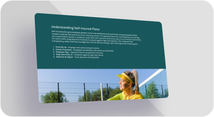 Understanding Self-Insured Plans Self-insured plans give employers greater control over healthcare costs by directly funding employee benefits instead of paying fixed premiums to an insurance carrier. This approach allows for more flexibility, cost savings, and customization based on employee needs. With self-insurance, businesses take on the financial responsibility for claims while using stop-loss insurance to protect against high-cost expenses. This model provides transparency, better cash flow management, and the ability to design a plan that aligns with company goals. Learn More 1. Fund Set Up – Employer sets aside money for claims. 2. Claims Processed – Employees use benefits, and claims are submitted. 3. Employer Pays – Approved claims are paid from the fund. 4. Stop-Loss Kicks In – Protection against high-cost claims. 5. Optimize & Adjust – Track data and refine benefits.