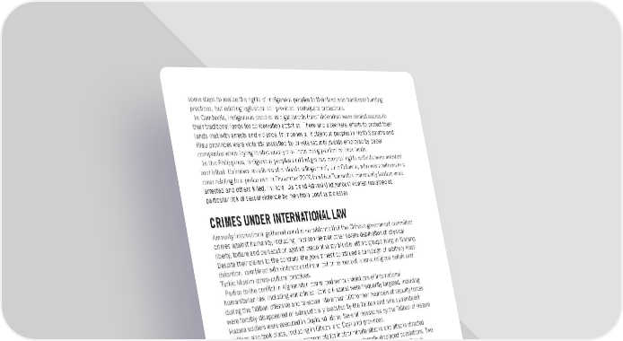 some steps to realize the rights of Indigenous peoples to their land and traditional hunting practices, but existing legislation still provided inadequate protections. In Cambodia, Indigenous peoples and grassroots forest defenders were denied access to their traditional lands for conservation activities. There and elsewhere, efforts to protect their lands met with arrests and violence. In Indonesia, Indigenous peoples in North Sumatra and Riau provinces were violently assaulted by private security guards employed by paper companies when trying to stop eucalyptus trees being planted on their lands. In the Philippines, Indigenous peoples and Indigenous peoples’ rights activists were arrested and killed. Unknown assailants shot dead a village chief, Julie Catamin, who was a witness in a case relating to a police raid in December 2020 in which Tumandok community leaders were arrested and others killed. In India, Dalit and Adivasi (Indigenous) women remained at particular risk of sexual violence by men from dominant classes. CRIMES UNDER INTERNATIONAL LAW Amnesty International gathered conclusive evidence that the Chinese government committed crimes against humanity, including imprisonment or other severe deprivation of physical liberty, torture and persecution against predominantly Muslim ethnic groups living in Xinjiang. Despite their claims to the contrary, the government continued a campaign of arbitrary mass detention, combined with violence and intimidation to root out Islamic religious beliefs and Turkic Muslim ethno-cultural practices. Parties to the conflict in Afghanistan committed serious violations of international humanitarian law, including war crimes. Ethnic Hazaras were frequently targeted, including during the Taliban offensive and takeover. More than 100 former members of security forces were forcibly disappeared or extrajudicially executed by the Taliban and nine surrendered Hazara soldiers were executed in Daykundi alone. Several massacres by the Taliban of Hazara civilians also took place, including in Ghazni and Daykundi provinces. In Myanmar, the military was responsible for indiscriminate attacks and attacks directed against civilians. It also blocked humanitarian access to internally displaced populations. Two humanitarian workers from Save the Children were among those killed by the military in eastern Kayah State in December. TORTURE AND OTHER ILL-TREATMENT Limited progress was made on preventing torture and other forms of ill-treatment which remained pervasive in a significant number of countries in the region. There were moves in both Pakistan and Thailand to criminalize torture. However, proposed legislation in the latter was not fully consistent with international standards. In Sri Lanka, new regulations issued under the Prevention of Terrorism Act potentially placed detainees at increased risk of torture. Torture and ill-treatment continued to be reported in these and other countries. In Myanmar, the widespread use of torture or other ill-treatment against people detained for their opposition to the coup was documented, in some cases resulting in death. Chinese authorities continued to use torture against detainees in Xinjiang and beyond and prosecuted those who spoke out about their experiences. In Nepal, torture and other ill-treatment were widely used in pretrial detention to extract “confessions” and intimidate detainees. There had yet to be any convictions under the 2017 Criminal Code, which criminalized these practices. Deaths in custody or shortly after release remained all too common in Malaysia, attributable, at least in some cases, to beatings and other ill-treatment sustained while in detention. Amnesty International Report 2021/22 41