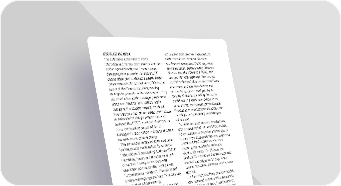 JOURNALISTS AND MEDIA strike action over poor working conditions The authorities continued to attack, and arrears in the payment of doctors’ intimidate and harass radio broadcasters that salaries and allowances. On 30 May, when hosted opposition figures, in some cases the strike began, police arrested Chikonde damaging their property. In February, PF Mukula, Secretary General of RDAZ, and cadres attempted to disrupt a Liberty Radio charged him with espionage. The charges programme which featured Harry Kalaba, the were later dropped after civil society activists leader of the Democratic Party, causing intervened. In June, Brian Sampa was damage to property. In the same month, they sacked from a government post by the disrupted a live Radio Luswepo programme Ministry of Health, for inciting doctors to which was hosting Harry Kalaba, again participate in a week-long go-slow. In the damaging the studio’s property. In March, same month, the Police Inspector General they fired tear gas into the Radio Chete studio threatened to arrest anyone attending Zoom in Nakonde for airing a programme which meetings, under the newly enacted cyber featured the UPND provincial chairman. In crimes law. June, unidentified people set fire to Tensions escalated ahead of the elections, Kalungwishi radio station in Chiengi district in with violence by both PF and UPND cadres. the early hours of the morning. Police used live ammunition and tear gas on The authorities continued to try and close 5 June in the Copperbelt Province to disperse leading private media outlets by using the unarmed UPND supporters who were Independent Broadcasting Authority (IBA) to escorting the party leader Hakainde intimidate, harass and threaten them with Hichilema’s convoy. On 15 June, the closure for hosting discussions with Electoral Commission of Zambia suspended opposition political parties, saying it was electoral campaigns for 14 days in the “unprofessional conduct”. The IBA issued Lusaka, Mpulungu, Nakonde and Namwala several warnings against Muvi TV and in May districts. it was given a final warning. In July, a Socialist Party council candidate In May, journalists Francis Mwiinga and was murdered by unidentified people who Nancy Malwele, who covered PF intra-party then set fire to his body. Later that month, factional disputes, were injured in an attack two PF youths were murdered in Kanyama by PF supporters, who also seized their township by suspected UPND supporters. equipment. In July, UPND cadres attacked Following their deaths, President Lungu journalist Victor Mwila, from Ikelen’gi district. deployed the army, air force and national The authorities later replaced the equipment service to assist police with law and order in that had been taken from him by his the election run-up. On election day, the PF attackers. Provincial Chairperson for the North West In August, the IBA granted Prime Television Province, Jackson Kungo, was murdered. His an operating licence, 16 months after killers were suspected to be UPND cadres. withdrawing it on “public interest” grounds. Several other people, accused of trying to rig FREEDOM OF ASSEMBLY the election in Solwezi, were manhandled and injured. Former police officer Jeyson Musonda was UNLAWFUL KILLINGS AND IMPUNITY arrested on 2 June for staging a one-man demonstration against the Inspector General In February, police constable Fanwell of Police and his use of police officers to Nyundu was arrested on two counts of abuse people. murder and went on trial in November. The The police threatened to arrest Brian charges related to the December 2020 killing Sampa, president of the Resident Doctors of two unarmed protesters after police Association of Zambia (RDAZ), after he opened fire on UPND supporters who had convened a meeting on 19 May calling for Amnesty International Report 2021/22 411