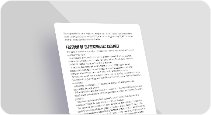 this as genocide and called for justice. In September, Canada’s Federal Court ordered Ottawa to pay Can$40,000 (approximately US$32,000) to each of approximately 50,000 First Nations children forcibly separated from their families. FREEDOM OF EXPRESSION AND ASSEMBLY The rights to freedom of expression, association and assembly came under threat in several countries in the region. Journalists and government critics were intimidated, harassed, threatened, censored, criminalized or denied access to public information in Brazil, Canada, Cuba, El Salvador, Guatemala, Mexico, Nicaragua, Uruguay and Venezuela. In February, the Inter-American Commission on Human Rights (IACHR) granted precautionary measures in favour of 34 staff members of El Salvador’s El Faro digital newspaper who had been subjected to harassment, threats and intimidation. In Venezuela, several media broadcasts were banned and a leading newspaper was fined for defamation of a high-ranking government official. A local NGO reported more than 290 attacks on journalists. In Colombia, the Foundation for Press Freedom reported 402 attacks on the press documenting the social protests. Following Cuba’s largest demonstration in decades on 11 July, the IACHR received reports of violent attacks on the media by police and government supporters and the arrest of at least 10 journalists. Restrictions, repression and bans on peaceful protest further undermined freedom of expression in Colombia, Cuba, Mexico, the USA and Venezuela. The Colombian government issued measures restricting the movement of transport and people to prevent participation in protests scheduled in various cities on 20 July. In Cuba, hundreds of people were detained during the historic protests on 11 July and in October the government banned another march to call for their release. Meanwhile, US lawmakers in at least 36 states and at the federal level introduced more than 80 pieces of draft legislation limiting freedom of assembly, with nine states enacting 10 such bills into law. EXCESSIVE USE OF FORCE Excessive use of force was employed to repress protests in many countries – including Argentina, Chile, Colombia, Honduras, Mexico, Paraguay, Puerto Rico and Venezuela. The OHCHR verified 46 deaths (44 civilian and two police officers) during Colombia’s National Strike demonstrations in April and May, as well as 49 reports of sexual violence. In Venezuela, the police, military and pro-government armed groups attacked at least 59 protests – resulting in the death of one protester and the injury of seven others. In Mexico, the police used unnecessary and excessive force, arbitrary detentions and even sexual violence to silence women protesting against gender-based violence. In Chile, updated figures from the Public Prosecutor’s Office and the National Institute of Human Rights showed there had been more than 8,000 victims of state agents violence since protests began in October 2019. Excessive use of force in police operations to tackle crime also resulted in significant loss of life. In Brazil, 6 May saw the most deadly operation ever by police in Rio de Janeiro which left 27 residents of the city’s Jacarezinho favela dead. In November, a further nine people died as the result of another police operation in Rio de Janeiro’s Complexo do Salgueiro favela. In November, police in Buenos Aires, Argentina, shot and killed 17-year-old footballer Lucas González in his car as he left a grocery store. Amnesty International Report 2021/22 30