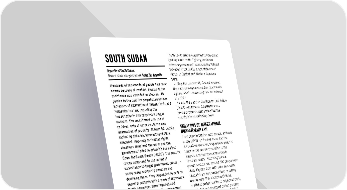 The SPLA-IO split in August led to inter-group SOUTH SUDAN fighting in the north. Fighting continued between government forces and the National Republic of South Sudan Salvation Front (NAS), a non-state armed Head of state and government: Salva Kiir Mayardit group, in Central and Western Equatoria State. Hundreds of thousands of people fled their In May, the UN Security Council renewed homes because of conflict. Humanitarian the arms embargo and set five benchmarks assistance was impeded or blocked. All against which the embargo will be reviewed parties to the conflict perpetrated serious in 2022.1 violations of international human rights and In July, the People’s Coalition for Civil Action humanitarian law, including the (PCCA) was formed. It called for mass indiscriminate and targeted killing of peaceful protests demanding that the civilians, the recruitment and use of country’s leadership step down. children, acts of sexual violence and VIOLATIONS OF INTERNATIONAL destruction of property. At least 52 people, HUMANITARIAN LAW including children, were extrajudicially executed. Impunity for human rights From June to October local groups, affiliated violations remained the norm and the to the SSPDF on the one hand, and the government failed to establish the Hybrid SPLA-IO on the other, waged a campaign of Court for South Sudan (HCSS). The security terror on the civilian population of the forces continued to use unlawful Balanda and Azande communities in surveillance to target government critics, in Tambura county. According to local some cases arbitrarily arresting and government figures, around 300 people were detaining them. They responded to calls for killed. Fighters from both sides summarily peaceful protests with a wave of repression. killed civilians by shooting them or cutting Death sentences were imposed and their throats; they abducted civilians; executions carried out. The government mutilated bodies; set fire to neighbourhoods; continued to fail in its obligation to respect and looted and destroyed civilian property, and protect the rights to health and schools and health facilities. The fighting education. displaced more than 80,000 people BACKGROUND according to UN-verified government figures. Families were separated as they fled, and In July, South Sudan celebrated 10 years of some were unable to reunite, even months independence. later. Displaced people in camps and host Extreme flooding continued and, according communities lacked food, medicine and 2 to the UN, affected eight out of 10 states, adequate shelter. creating and exacerbating a humanitarian Fighting between government and crisis. opposition forces and the NAS persisted for Violence persisted in various pockets across the fourth year. According to the UN, NAS the country, setting parties to the conflict, as members attacked a hospital and subjected well as local groups aligned with them, at least three people to sexual violence in against each other. Months of tension addition to other human rights violations. culminated in fighting in June in Tambura In other areas, fighting between ethnic county in Western Equatoria State between groups, clans and sub-clans continued, competing local groups aligned with forces resulting in at least 441 incidents involving affiliated to the government’s South Sudan human rights violations, including arbitrary People’s Defence Forces (SSPDF) on the one killings, injuries, abductions, conflict-related hand, and the Sudan People’s Liberation sexual violence, arbitrary arrests and Army-In Opposition (SPLA-IO) on the other. detention, torture and other ill-treatment, and Amnesty International Report 2021/22 338