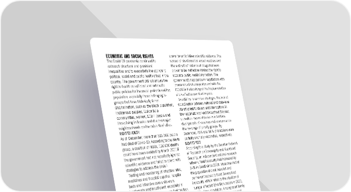 commitment to follow scientific evidence. The ECONOMIC AND SOCIAL RIGHTS The Covid-19 pandemic continued to spread of disinformation about vaccines and entrench structural and persistent the authorities’ defence of drugs that were inequalities and to exacerbate the economic, proven to be ineffective violated the right to political, social and public health crises in the accurate public health information. The country. The government did not ensure the government's negligence in negotiations with right to health or sufficient and adequate pharmaceutical companies and with the public policies for the social protection of the COVAX initiative delayed the implementation population, especially those belonging to of an effective vaccination plan. groups that have historically faced In addition to vaccine shortages, the lack of discrimination, such as the Black population, coordination between national and state-level Indigenous peoples, Quilombola planning led to delays and interruptions in communities, women, LGBTI people and the vaccination roll-out throughout the year, those living in favelas and disadvantaged as well as inconsistencies in schedules, neighbourhoods on the outskirts of cities. deployments of vaccines and consensus on RIGHT TO HEALTH the coverage of priority groups. By As of December, more than 615,000 people December, 75% and 66% of Brazilians were had died of Covid-19. According to the Alerta partially and fully vaccinated, respectively. group, a coalition of NGOs, 120,000 deaths RIGHT TO FOOD could have been avoided by March 2021 if According to a study by the Brazilian Network the government had not repeatedly ignored of Research on Sovereignty and Nutritional scientific evidence and failed to coordinate Security, an independent national research 1 strategies to address the crisis. network, food insecurity had increased by Testing and monitoring of infection rates, 54% in Brazil since 2018. More than half of medicines and hospital supplies, hospital the population did not have full and beds and intensive care units were permanent access to food. Severe food inadequate and insufficient, especially in insecurity, which refers to the situation of public health facilities. As a result of the lack hunger, affected 19 million people in 2021, of oxygen in hospitals, people died in the or 9% of the population. Among small family 2 state of Amazonas in January. The shortage farmers and Quilombola, Indigenous and of the medication necessary for the riverside communities, the proportion of intubation of the most severely ill subjected households affected rose to 12%. patients, their families and healthcare Households headed by women and Black professionals to stress and suffering. people suffered most from the lack of food. According to the Alerta group, the RIGHTS TO HOUSING, WATER AND SANITATION government's neglect of socioeconomic and A significant part of the population continued territorial inequalities, which in Brazil are to live in precarious situations, lacking related to racial inequalities, meant that essential services. According to the Trata Black people and those living in poverty Brasil Institute, nearly 35 million people did experienced the highest death rates. They not have access to clean water and 100 were particularly affected by the shortage of million had no sewage collection. intensive care beds in public facilities and Those living in rural and traditional many died in pre-hospital units waiting for territories and disadvantaged admission to specialist care units. neighbourhoods were most affected by the Investigations undertaken by the non-existent or insufficient sanitation Parliamentary Commission of Inquiry infrastructure. A study by the NGO Criola suggested that government actions during found that the percentage of the Black Covid-19 vaccine negotiations and population living in inadequate homes was implementation of the vaccine programme significantly higher than that of the white lacked coordination, efficiency, and population. In addition to the lack of basic Amnesty International Report 2021/22 100
