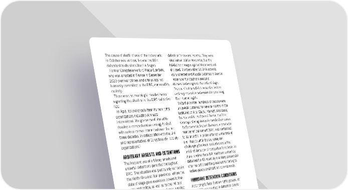 The cause of death of one of the defendants detention for several months. They were in October was unclear. He was the third released on bail in November, but the defendant to die since the trial began. fabricated charges against them were not Former Congolese warlord Roger Lumbala, dropped. Thirteen other LUCHA activists who was arrested in France in December were arrested and illegally detained in Beni in 2020 over war crimes and crimes against November for staging a peaceful humanity committed in the DRC, remained in demonstration against the state of siege. custody. Dozens of other activists were also held in There were no meaningful developments arbitrary detention nationwide for exercising regarding the situation in the DRC before the their human rights. ICC. In Ituri province, hundreds of people were In April, following calls from human rights unlawfully detained for several months in the organizations including Amnesty territories of Aru, Djugu, Mahagi, Mambasa, International, the government started to Irumu, and in the town of Bunia, due to a develop a comprehensive strategy to deal shortage of magistrates to handle their cases. with serious crimes committed over the last In September, Hubert Berocan, a provincial three decades, in collaboration with the UN member of parliament (MP), was sentenced and representatives of Congolese civil society to 12 months in prison after an unfair trial at 1 organizations. a military court in Bunia, solely for ARBITRARY ARRESTS AND DETENTIONS challenging the local executive about the unfair distribution of computers to schools. In The frequent use of arbitrary arrests and June, another local MP had been unlawfully unlawful detentions persisted throughout detained for 48 hours by a military prosecutor DRC. The situation was particularly serious in after he criticized the president for failing to the North Kivu and Ituri provinces, where the restore peace and fulfil his commitments. state of siege gave excessive powers to the INHUMANE DETENTION CONDITIONS army and police, as well as to the military justice system. The security forces arrested According to local human rights groups, at and detained hundreds of civilians without least 220 people died in detention due to due process, many for non-criminal acts overcrowding, poor conditions and such as debt or land disputes. healthcare, and lack of food, among other In February, three activists from the citizens’ factors which could amount to torture or movement “Jicho la Raiya” (Eye of the other ill-treatment by the state. Some prisons People) were arrested in North Kivu for and detention centres held up to 500% over organizing a peaceful sit-in to protest against their intended capacity, as a result of alleged illegal taxes on roads and alleged dysfunction in the criminal justice system, mismanagement of a local healthcare especially in North Kivu and Ituri where the administration. They remained in arbitrary capacity of military courts, which took over detention in Goma city at the end of the year. the criminal jurisdiction over civilians under Two activists from civil society movement the state of siege, became even more limited Lutte pour le Changement (LUCHA) were in terms of geographical access and staffing. arrested in Goma in July and September, FREEDOM OF ASSEMBLY respectively, for saying that local authorities and staff of the Denise Nyakeru Tshisekedi Bans on, or other suppression of, peaceful Foundation, established by the First Lady, demonstrations were common once again. diverted humanitarian aid intended for The authorities frequently banned rallies and survivors displaced by a volcanic eruption protests organized by opposition leaders and near Goma in May. Following a defamation activists, trade unions and civil society complaint to the military justice prosecutor by groups, while security forces violently the Foundation, they were held in arbitrary suppressed those that went ahead. In April, Amnesty International Report 2021/22 147