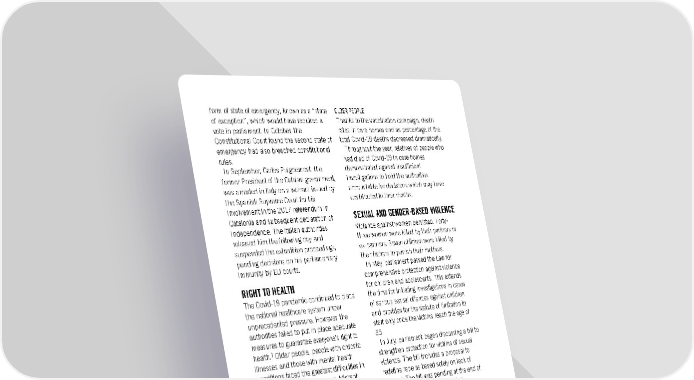 form of state of emergency, known as a “state OLDER PEOPLE of exception”, which would have required a Thanks to the vaccination campaign, death vote in parliament. In October, the rates in care homes and as percentage of the Constitutional Court found the second state of total Covid-19 deaths decreased dramatically. emergency had also breached constitutional Throughout the year, relatives of people who rules. had died of Covid-19 in care homes In September, Carles Puigdemont, the demonstrated against insufficient former President of the Catalan government, investigations to hold the authorities was arrested in Italy on a warrant issued by accountable for decisions which may have the Spanish Supreme Court for his contributed to their deaths. involvement in the 2017 referendum in SEXUAL AND GENDER-BASED VIOLENCE Catalonia and subsequent declaration of independence. The Italian authorities Violence against women persisted. Forty- released him the following day and three women were killed by their partners or suspended the extradition proceedings, ex-partners. Seven children were killed by pending decisions on his parliamentary their fathers to punish their mothers. immunity by EU courts. In May, parliament passed the Law for RIGHT TO HEALTH comprehensive protection against violence for children and adolescents. This extends The Covid-19 pandemic continued to place the time for initiating investigations in cases the national healthcare system under of serious sexual offences against children unprecedented pressure. However, the and provides for the statute of limitation to authorities failed to put in place adequate start only once the victims reach the age of measures to guarantee everyone’s right to 35. health.1 Older people, people with chronic In July, parliament began discussing a bill to illnesses and those with mental health strengthen protection for victims of sexual conditions faced the greatest difficulties in violence. The bill includes a proposal to accessing care and treatment. Migrant redefine rape as based solely on lack of women were particularly affected by a consent. The bill was pending at the end of weakened primary care service as they the year. Sex-worker-led and other shouldered the greater burden of caring for organizations were concerned that proposed the sick with a less accessible healthcare reforms in the same bill to address system.2 exploitation in the sex industry risked During the Covid-19 vaccination campaign, undermining sex workers’ rights and had non-nationals, in particular people with an been approved by the government without irregular migration status, encountered meaningful consultation and their greater barriers to accessing the health participation. service and vaccines due to a lack of clear SEXUAL AND REPRODUCTIVE RIGHTS protocols regarding identification and access to information for these groups. Abortion for girls between 16 and 18 years of There was an increase in mental health age still required parental permission. The needs during the pandemic, which exposed persistently high number of “conscience- the lack of adequately resourced mental based refusals” from healthcare providers health services. Healthcare workers were continued to limit women’s access to abortion particularly impacted by increases in stress- in the national health system. related illnesses, due to working conditions RIGHT TO HOUSING and care overload. In October, the government announced the adoption of a Despite the pandemic, between January and Mental Health National Strategy after seven June, there were 22,536 evictions. Nearly years without one. 5,400 concerned people who were unable to Amnesty International Report 2021/22 342