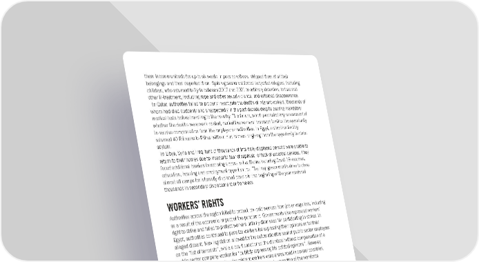 them incommunicado for up to six weeks in poor conditions, stripped them of all their belongings and then deported them. Syrian government forces subjected refugees, including children, who returned to Syria between 2017 and 2021 to arbitrary detention; torture and other ill-treatment, including rape and other sexual violence; and enforced disappearance. In Qatar, authorities failed to properly investigate the deaths of migrant workers, thousands of whom had died suddenly and unexpectedly in the past decade despite passing mandatory medical tests before travelling to the country. This failure, which precluded any assessment of whether the deaths were work-related, denied the workers’ bereaved families the opportunity to receive compensation from the employer or authorities. In Egypt, authorities forcibly returned 40 Eritreans to Eritrea without due process or giving them the opportunity to claim asylum. In Libya, Syria and Iraq, tens of thousands of internally displaced persons were unable to return to their homes due to insecurity, fear of reprisals, or lack of essential services. They faced additional barriers in securing access to healthcare including Covid-19 vaccines, education, housing and employment opportunities. The Iraqi government’s drive to close almost all camps for internally displaced people in the beginning of the year rendered thousands in secondary displacement or homeless. WORKERS’ RIGHTS Authorities across the region failed to protect low-paid workers from job or wage loss, including as a result of the economic impact of the pandemic. Governments also repressed workers’ right to strike and failed to protect workers unfairly dismissed for participating in strikes. In Egypt, authorities continued to penalize workers for expressing their opinions or for their alleged dissent. New legislation allowed for the automatic dismissal of public sector employees on the “list of terrorists”, while a court sanctioned the dismissal without compensation of a public sector company worker for “publicly expressing his political opinions”. However, reforms to improve protection for migrant workers were announced in several countries, particularly in the Gulf, where they make up a very high proportion of the workforce. WOMEN’S AND GIRLS’ RIGHTS Across the region, violence against women and girls went mostly unpunished by criminal justice systems. So-called “honour” killings continued to take place in Jordan, Iraq, Kuwait and in Palestine with the authorities failing to take action to prosecute the perpetrators. Proposed legislation on addressing violence against women in Iran contained some welcome provisions including on the establishment of safe houses, but failed to define domestic violence as a separate offence, criminalize marital rape and child marriage, and favoured reconciliation over accountability in cases of domestic violence. Additional legislative changes in Iran further undermined women’s reproductive rights, severely restricting access to contraception, voluntary sterilization services and related information. In Libya, authorities failed to provide protection or redress for women and girls from rape and other sexual and gender-based violence as well as killings, torture and unlawful deprivation of liberty by militias, armed groups, and other non-state actors. In Yemen, Huthi authorities pursued a campaign of detention and enforced disappearance of women and girls, targeting those perceived to be challenging Huthi-enforced gender norms. Women across the region continued to face entrenched discrimination in law, including in relation to marriage, divorce, child custody, inheritance and, additionally in Saudi Arabia and Iran, employment and political office. Proposed legislative changes to personal status laws in Egypt further undermined women’s autonomy and retained discriminatory provisions. Amnesty International Report 2021/22 59