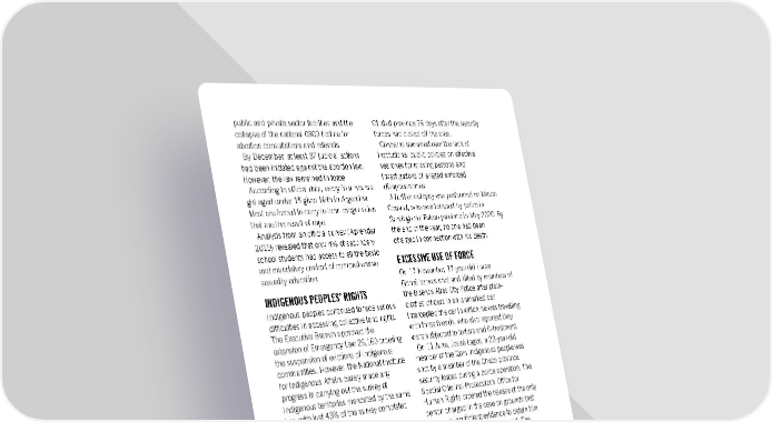 public and private sector facilities and the Chubut province 78 days after the security collapse of the national 0800 hotline for forces had closed off the area. abortion consultations and referrals. Concerns remained over the lack of By December, at least 37 judicial actions institutional public policies on effective had been initiated against the abortion law. searches for missing persons and However, the law remained in force. investigations of alleged enforced According to official data, every four hours a disappearances. girl aged under 15 gives birth in Argentina. A further autopsy was performed on Mauro Most are forced to carry to term pregnancies Coronel, who was tortured by police in that are the result of rape. Santiago del Estero province in May 2020. By Analysis from an official survey (Aprender the end of the year, no one had been 2019) revealed that only 4% of secondary charged in connection with his death. school students had access to all the basic EXCESSIVE USE OF FORCE and mandatory content of comprehensive sexuality education. On 17 November, 17-year-old Lucas González was shot and killed by members of INDIGENOUS PEOPLES’ RIGHTS the Buenos Aires City Police after plain- Indigenous peoples continued to face serious clothes officers in an unmarked car difficulties in accessing collective land rights. intercepted the car in which he was travelling The Executive Branch approved the with three friends, who also reported they extension of Emergency Law 26,160 ordering were subjected to torture and ill-treatment. the suspension of evictions of Indigenous On 11 June, Josué Lagos, a 23-year-old communities. However, the National Institute member of the Qom Indigenous people was for Indigenous Affairs barely made any shot by a member of the Chaco province progress in carrying out the survey of security forces during a police operation. The Indigenous territories mandated by the same Special Criminal Prosecutor's Office for law, with just 43% of the survey completed Human Rights ordered the release of the only by the end of the year. person charged in the case on grounds that IMPUNITY there was insufficient evidence to detain him further. The investigation continued. The Trials before ordinary civilian courts Comprehensive Approach to Institutional continued for crimes against humanity Violence by police officials in the Security and committed under the 1976-1983 military Penitentiary Services Bill remained pending regime. Between 2006 and September 2021, before the Lower House at the end of the 264 rulings were handed down, bringing the year. total number of convictions to 1,044 and acquittals to 162. REFUGEES’ AND MIGRANTS’ RIGHTS The investigation into the disappearance In May, the executive branch repealed and death of Facundo Astudillo Castro failed Executive Order 70/2017, which had to make significant progress by the end of the introduced serious regressive measures year. His body was found 107 days after he regarding migrants' rights. was reported missing in late April 2020. He Migrants, refugees and asylum seekers with was last seen at a police checkpoint in limited access to the formal labour market Buenos Aires province. and adequate housing were among those A decision by the Supreme Court in the most affected by Covid-19. case of the possible enforced disappearance Border restrictions continued to affect the of Santiago Maldonado remained pending at resettlement of refugees through Argentina’s the end of the year. His body was found in community sponsorship-based Syria 2017 in a river on Mapuche territory in Programme. Five Syrian refugee families with approval to travel to Argentina had their Amnesty International Report 2021/22 76