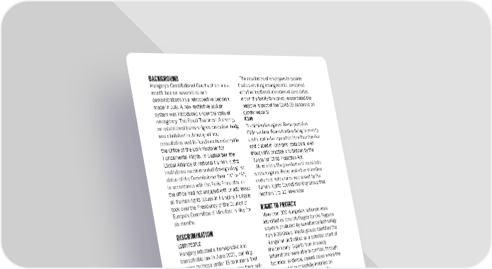 BACKGROUND The reluctance of employers to provide Hungary’s Constitutional Court upheld a six- flexible working arrangements, combined month ban on assemblies and with the traditional allocation of care duties demonstrations in a retrospective decision within the family to women, exacerbated the made in July. A new restrictive asylum negative impact of the Covid-19 pandemic on system was introduced under the state of gender equality. emergency. The Equal Treatment Authority, ROMA an established human rights protection body, Discrimination against Roma persisted. was abolished in January without Children from Roma families living in poverty consultation and its functions transferred to continued to be separated from their families the Office of the Commissioner for and placed in long-term state care, even Fundamental Rights. In September, the though this practice is forbidden by the Global Alliance of National Human Rights Hungarian Child Protection Act. Institutions recommended downgrading the Alarm about the prevalence of racist hate status of the Commissioner from “A” to “B”, speech against Roma and other minorities in accordance with the Paris Principles, as and about hate crimes was raised by the the office had not engaged with or addressed Human Rights Council Working Group that all human rights issues in Hungary. Hungary met from 1 to 12 November. took over the Presidency of the Council of RIGHT TO PRIVACY Europe’s Committee of Ministers in May for six months. More than 300 Hungarian nationals were DISCRIMINATION identified as possible targets for the Pegasus spyware produced by surveillance technology LGBTI PEOPLE firm NSO Group. Media groups identified the Hungary adopted a homophobic and Hungarian authorities as a potential client of transphobic law in June 2021, banning the company. Experts from Amnesty access by those under 18 to material that International were able to confirm, through promotes or portrays “divergence from self- technical evidence, several cases where the identity corresponding to sex at birth … or spyware was successfully installed on homosexuality”. The new law violated the phones, some of them belonging to rights to freedom of expression, non- journalists. The Hungarian National Security discrimination and education.1 The European Services Act remained in violation of Article 8 Commission launched an infringement of the European Convention on Human procedure against Hungary in July. Rights, according to a European Court of WOMEN Human Rights (ECtHR) judgment in the case The government was still reluctant to ratify of Szabó and Vissy v. Hungary in 2016. the Council of Europe Convention on In a unanimous ruling in July in the case of preventing and combating violence against Vig v. Hungary, the ECtHR found that women and domestic violence (Istanbul enhanced police checks used in 2013 when Convention) that it signed in 2014, alleging Dávid Vig – then a lawyer and academic – that the convention promoted “gender was stopped and searched under the ideology” and “illegal migration”.2 provisions of the Police Act, were in violation Women continued to experience of the right to privacy. widespread gender-based discrimination. Many government policies and REFUGEES’ AND MIGRANTS’ RIGHTS communications actively reinforced gender The European Border and Coast Guard stereotyping, promoting women’s domestic Agency (Frontex) suspended its operations in roles while downplaying the importance of Hungary in January after the government gender equality. failed to address a December 2020 ruling by the Court of Justice of the EU (CJEU) against Amnesty International Report 2021/22 188