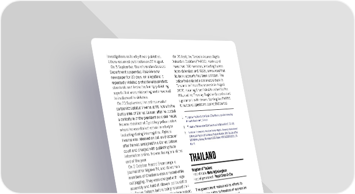 investigations as to why it was published. On 20 April, the Tanzania Human Rights Uhuru resumed publication on 27 August. Defenders Coalition (THRDC), made up of On 5 September, the Information Services more than 160 members, including human Department suspended Raia Mwema rights defenders and NGOs, announced that newspaper for 30 days, on allegations it its bank accounts had been unfrozen. The repeatedly violated professional journalistic police had ordered a commercial bank in standards and broke the law by publishing Tanzania to freeze the accounts in August reports that were misleading and amounted 2020, claiming it had failed to submit to the to incitement to violence. Office of the Treasury Registrar its contractual On 23 September, the police arrested agreements with donors, leading the THRDC cartoonist Optatus Fwema at his home in the to suspend operations during that period. Bunju area of Dar es Salaam after he posted a caricature of the president on social media. 1. “Tanzania: President’s new Covid-19 taskforce a positive move but He was detained at Oysterbay police station the work starts now”, 26 April where he was denied access to a lawyer, 2. “Tanzania: Release opposition leader and party members”, 21 July including during interrogation. Optatus 3. Tanzania: A chance to Prioritize Human Rights: Amnesty International Fwema was released on bail on 8 October Submission for the UN Universal Periodic Review, 39th Session of the after he was arraigned in a Dar es Salaam UPR Working Group, November 2021 (Index: AFR 56/3885/2021), 25 court and charged with publishing false March information online. He was facing trial at the end of the year. On 2 October, Harold Shemsanga, a THAILAND journalist for Mgawe TV, and six women members of Chadema were arrested while Kingdom of Thailand out jogging. They were charged with illegal Head of state: Maha Vajiralongkorn assembly and held at Mbweni police station Head of government: Prayut Chan-O-Cha in Dar es Salaam before being released on 4 October without being brought before a court. The government redoubled its efforts to HUMAN RIGHTS DEFENDERS restrict the rights to freedom of expression and peaceful assembly. Police used The authorities subjected human rights excessive force against protesters. defenders to arbitrary arrest and detention, Authorities judicially harassed and prosecution, intimidation, harassment and arbitrarily detained pro-democracy activists threats. On 5 January, a court in Dar es and human rights defenders. Proposed Salaam released human rights lawyer Tito legislation on torture and enforced Magoti, and his co-accused Theodory Giyani. disappearance did not comply with They had been arrested in December 2019 Thailand’s international human rights in connection with social media activities and obligations. Authorities increased the use of charged under the Economic and Organized lèse-majesté laws and criminally accused at Crimes Control Act 1984 for offences that do least 100 people, including children, of not allow for bail, and other charges under defaming the monarchy. the Cybercrimes Act 2015 and the Anti- BACKGROUND Money Laundering Act 2007. Their court case was adjourned more than 10 times Student-led protests gathered in strength and before they were finally released after number over the course of the year. entering a plea-bargain agreement with the Authorities imposed lockdown measures in DPP under which they were ordered to pay a parts of the country in response to surges in joint fine of TZS17.3 million (about Covid-19 infections. The government was 3 US$7,400). criticized for its slow vaccine roll-out, and the Amnesty International Report 2021/22 362