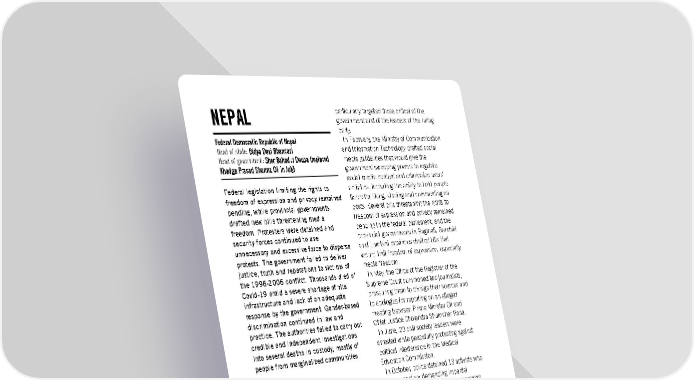 particularly targeted those critical of the NEPAL government and of the leaders of the ruling party. Federal Democratic Republic of Nepal In February, the Ministry of Communication Head of state: Bidya Devi Bhandari and Information Technology drafted social Head of government: Sher Bahadur Deuba (replaced media guidelines that would give the Khadga Prasad Sharma Oli in July) government sweeping powers to regulate social media content and criminalize users’ Federal legislation limiting the rights to activities, including the ability to hold people freedom of expression and privacy remained liable for liking, sharing and commenting on pending, while provincial governments posts. Several bills threatening the rights to drafted new bills threatening media freedom of expression and privacy remained freedom. Protesters were detained and pending in the federal parliament, and the security forces continued to use provincial governments in Bagmati, Gandaki unnecessary and excessive force to disperse and Lumbini provinces drafted bills that protests. The government failed to deliver would limit freedom of expression, especially justice, truth and reparations to victims of media freedom. the 1996-2006 conflict. Thousands died of In May, the Office of the Registrar of the Covid-19 amid a severe shortage of vital Supreme Court summoned two journalists, infrastructure and lack of an adequate pressuring them to divulge their sources and response by the government. Gender-based to apologize for reporting on an alleged discrimination continued in law and meeting between Prime Minister Oli and practice. The authorities failed to carry out Chief Justice Cholendra Shumsher Rana. credible and independent investigations In June, 20 civil society leaders were into several deaths in custody, mostly of arrested while peacefully protesting against people from marginalized communities. political interference in the Medical BACKGROUND Education Commission. In October, police detained 13 activists who Amid disputes within the ruling party, Prime were peacefully demanding impartial Minister Oli dissolved the lower house of the investigations into the death of one woman parliament in May. Calling it an and the disappearance of another in Banke “unconstitutional move”, in July the Supreme district. Ruby Khan, one of the protesters, Court reinstated the dissolved lower house was detained by police on trumped-up and ordered the appointment of Sher charges of “polygamy” before the Supreme Bahadur Deuba as the new prime minister. Court ordered her release. In October, unseasonal rainfall linked to Also in October, four men died when climate change led to floods and landslides, security forces opened fire to evict protesters resulting in more than 100 deaths and in Rupandehi district. displacing more than 1,100 families. The RIGHT TO TRUTH, JUSTICE AND rains affected farmers’ livelihoods and REPARATION threatened food security, destroying more than 325,000 tonnes of paddy crops, the The government continued to fail to deliver highest losses on record. The government’s truth, justice and reparations to tens of mitigation and relief support was inadequate. thousands of victims of crimes under FREEDOM OF EXPRESSION AND international law and other grave human ASSEMBLY rights violations committed during the 1996-2006 conflict. The Truth and The authorities continued to use the Reconciliation Commission and the Electronic Transactions Act 2006 to arbitrarily Commission of Investigation on Enforced detain individuals, including journalists. They Disappeared Persons, which had respectively Amnesty International Report 2021/22 268