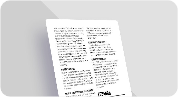 measures ordered by the European Court of The ILGA-Europe index ranked Latvia the Human Rights, but concerns were raised that second worst EU country in which to be an the needs of asylum seekers were not being LGBTI person, referring to bias-motivated met. In November, Latvia installed a speech, violence and other forms of temporary 37km fence on its border with discrimination. Belarus. In December, the EU Commission RIGHT TO A NATIONALITY proposed allowing Latvia, Lithuania and Poland extended timescales to register and Despite legislative changes in 2020, process asylum claims, as well as simplified statelessness remained high. Close to and quicker return procedures, weakening 200,000 people held the status of “non- EU asylum procedures. By year’s end some citizens”, facing discrimination in accessing 4,045 people had been intercepted at the economic, social, cultural and other rights. border and pushed back to Belarus and RIGHT TO EDUCATION around 446 detained for entering the country irregularly. The CESCR noted an increase in the number of Roma students completing compulsory WOMEN’S RIGHTS primary education but expressed concern In June, the Constitutional Court found the about discrimination against children Council of Europe Convention on preventing belonging to minority groups and and combating violence against women and undocumented migrant children, the domestic violence (Istanbul Convention) to be exclusion of people with disabilities from in compliance with the Latvian Constitution, mainstream education, and the but no further progress towards its ratification disproportionately high number of Roma was made. children enrolled in special needs SEXUAL AND REPRODUCTIVE RIGHTS programmes. Women and girls faced difficulties accessing sexual, reproductive and other essential LEBANON health information and services. The UN’s Committee on Economic, Social and Cultural Republic of Lebanon Rights (CESCR) noted in particular the Head of state: Michel Aoun limited access to free contraception for Head of government: Najib Mikati (replaced Hassan adolescent girls and young women. Diab in July, who replaced Saad Hariri in July) LGBTI PEOPLE’S RIGHTS The authorities’ response to Lebanon’s After being cancelled in 2020 due to the deepening economic crisis failed to ensure Covid-19 pandemic, Baltic Pride took place residents’ right to health and even their in August. In March, the CESCR raised right to life during the most acute moments concerns that the legislative framework of fuel and medicine shortages, as it lifted continued to omit sexual orientation and subsidies while failing to roll out an gender identity as grounds for discrimination. effective social protection scheme to help Parliament failed to legislate to recognize and mitigate the impact of these policies. protect the rights of same-sex couples, Impunity continued to protect perpetrators despite consecutive Constitutional Court of murder, torture and the devastating rulings confirming this obligation was explosion in 2020 at the port in the capital, enshrined in the Constitution. In December, Beirut. Authorities used terrorism-related the Supreme Court concluded that charges to prosecute protesters in Tripoli administrative courts may temporarily provide demanding socio-economic rights. Migrant such recognition and protection pending workers, particularly women domestic legislation. workers, continued to have their rights Amnesty International Report 2021/22 229