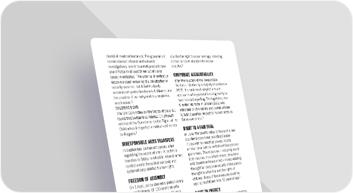 denial of medical treatment. The government couples the right to equal marriage, including commissioned internal and external access to sperm donation for lesbian 5 investigations, which found disproportionate couples. use of force in at least three out of seven CORPORATE ACCOUNTABILITY cases investigated. The external investigation recommended reviewing the privatization of After the rejection of the Responsible security services, but failed to clearly Business Initiative by a majority of cantons in recommend protection for whistleblowers and 2020, the parliament adopted a much the creation of an independent complaints weaker counter-proposal focusing mainly on mechanism.2 non-financial reporting. The legislation, due CHILDREN’S RIGHTS to enter into force in January 2022, was The UN Committee on the Rights of the Child criticized by civil society and looked unlikely found that Switzerland violated 10 different to fully guarantee respect for human rights by 6 articles of the Convention on the Rights of the Swiss companies. Child when it deported a mother and her son 3 RIGHT TO A FAIR TRIAL to Bulgaria. IRRESPONSIBLE ARMS TRANSFERS In June, the country voted in favour of a new counter-terrorism law providing Federal In September, parliament passed a law Police with far-reaching powers, mostly regulating the export of arms. It prohibits without prior judicial control and due process transfers to States involved in internal armed guarantees. The measures – including use of conflict and to those that seriously and foot shackles, no-contact orders, zone bans systematically violated human rights. and preventive house arrest – risked violating FREEDOM OF ASSEMBLY the right to liberty and security of the person, the right to a fair trial and the rights of On 1 April, police cleared a protest camp children. Many of the measures could be near Eclépens. Of 150 environmental applied to children from 12 years of age.7 activists temporarily arrested, 43 were RIGHT TO PRIVACY charged. The imposition of prison sentences on some protesters following acts of civil In a welcome development for the protection disobedience unduly restricted their rights to of the right to privacy, in November, motions freedom of expression, conscience and were introduced in the local parliaments of 4 peaceful assembly. Zurich and Lausanne calling for a ban on the use of facial recognition technologies.8 DISCRIMINATION WOMENS’ RIGHTS 1. Switzerland: “I ask that they treat asylum seekers like human Parliament continued revising the criminal beings” – Human rights violations in Swiss federal asylum centres code provisions on rape. The public (EUR 43/4226/2021) 19 May consultation process showed an 2. “Switzerland: Moving Forward to Fight Violence in Federal Asylum unprecedented mobilization for a new rape Centres”, 18 October (French and German only) law based on consent. 3. “Children’s Rights: Switzerland criticized by UN Committee”, 21 In March, a referendum seeking to ban full- December (French and German only) face veils was accepted by a narrow margin, 4. “Switzerland: Prison sentences against environmental HRDs: despite concerns that the ban discriminated disproportionate and not confirming with human rights law”, 8 against a single religious community and September (French and German only) violated women’s rights, freedom of 5. “Switzerland: A milestone for equality”, 26 September (French and expression and religion. German only) 6. “Switzerland: Instructions for looking the other way”, 1 July (French LGBTI PEOPLE’S RIGHTS and German only) In a September referendum, a large majority of the population agreed to grant same-sex Amnesty International Report 2021/22 352