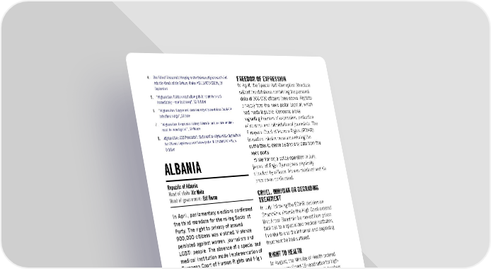 4. The Fate of Thousands Hanging in the Balance: Afghanistan’s Fall FREEDOM OF EXPRESSION into the Hands of the Taliban, (Index: ASA 11/4727/2021), 21 In April, the Special Anti-Corruption Structure September seized the database containing the personal 5. “Afghanistan: Taliban must allow girls to return to school data of 900,000 citizens (see above: Right to immediately – new testimony”, 13 October 6. “Afghanistan: Oxygen and vaccines urgently needed as Covid-19 privacy) from the news portal Lapsi.al, which had made it public. Concerns arose infections surge”, 11 June 7. “Afghanistan: Despicable killing of female polio vaccine workers regarding freedom of expression, protection of sources and intimidation of journalists. The must be investigated”, 30 March 8. Afghanistan: ICC Prosecutor’s Statement on Afghanistan Jeopardises European Court of Human Rights (ECtHR) his Office’s Legitimacy and Future (Index: IOR 53/4842/2021), 5 issued an interim measure ordering the October authorities to cease seizing any data from the news portal. While filming a police operation in July, ALBANIA journalist Ergys Gjencaj was physically attacked by officers. He was detained and his Republic of Albania phone was confiscated. Head of state: Ilir Meta Head of government: Edi Rama CRUEL, INHUMAN OR DEGRADING TREATMENT In April, parliamentary elections confirmed In July, following the ECtHR decision on the third mandate for the ruling Socialist Strazimiri v. Albania, the High Court ordered Party. The right to privacy of around that Arben Strazimiri be moved from prison 900,000 citizens was violated. Violence facilities to a specialized medical institution, persisted against women, journalists and in order to end the inhuman and degrading LGBTI people. The absence of a specialized treatment he had suffered. medical institution made implementation of RIGHT TO HEALTH European Court of Human Rights and High Court rulings impossible. In August, the Ministry of Health ordered RIGHT TO PRIVACY compulsory Covid-19 vaccination for high- risk groups such as medical staff, teachers In early April an unlawful database holding and students. the personal data of some 900,000 citizens According to the Ombudsman, the number and used by the Socialist Party for electoral of people infected with Covid-19 far purposes was leaked days before the outnumbered the treatment packages for elections. A total of 162 citizens sued the which they could be reimbursed. Patients Socialist Party for violation of data protection diagnosed during March-November 2020, as law. In December, two other databases were well as those tested positive by private health leaked, causing public outrage. They held institutions, were not eligible to be personal data such as salaries, workplaces reimbursed for medication. and type of car owned for more than 600,000 taxpayers. LGBTI PEOPLE’S RIGHTS In July, the Constitutional Court nullified LGBTI people remained subject to certain provisions of the Law on the State discrimination and harassment. A Police which had allowed the police to transgender woman was beaten in the street. conduct mass surveillance of citizens without In June, the Civil Registry prohibited a prior court authorization. Those provisions lesbian couple from registering as parents. were found unconstitutional as they imposed VIOLENCE AGAINST WOMEN AND GIRLS illegal limitations on the right to privacy. Women candidates faced hate speech during the electoral campaign in March. Amnesty International Report 2021/22 68