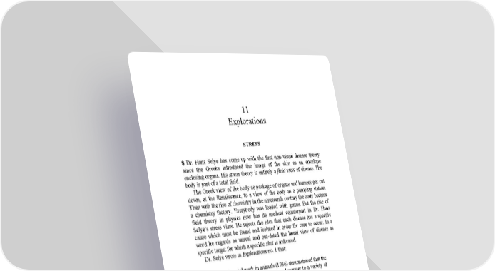 11 Explorations STRESS 8 Dr. Hans Selye has come up with the first non-visual disease theory since the Greeks introduced the image of the skin as an envelope enclosing organs. His stress theory is entirely a field view of disease. The body is part of a total field. The Greek view of the body as package of organs and humors got cut down, at the Renaissance, to a view of the body as a pumping station. Then with the rise of chemistry in the nineteenth century the body became a chemistry factory. Everybody was loaded with germs. But the rise of field theory in physics now has its medical counterpart in Dr. Hans Selye’s stress view. He rejects the idea that each disease has a specific cause which must be found and isolated in order for cure to occur. In a word he regards as unreal and out-dated the lineal view of disease as specific target for which a specific shot is indicated. Dr. Selye wrote in Explorations no. 1 that: experimental work in animals (1936) demonstrated that the organism responds in a stereotyped manner to a variety of factors such as infections, intoxications, trauma, nervous strain, heat, cold, muscular fatigue or X-irradiation… Their only common feature was that they placed the body in a state of general (systemic) stress. We therefore concluded that this stereotyped response, which was superimposed upon the specific effects, represented the somatic manifestations of non-specific stress itself. The field theory finds unnecessary the cell theory of Schleiden and Schwann (1839), just as in physics it detaches itself from the visual closed system of Newtonian mechanics. The Selye theory becomes at once intelligible and acceptable in our twentieth century of oral awareness. That “all vital phenomena depend merely upon quantitative variations in the activation of pre-existent elementary targets” is not a superficial view in terms of auditory space. In the old lineal terms, quantitative relations mean the exclusion of most meaning and of all spiritual complexity. A mere sequence of such effects can contain no vital or analogical drama of proportions. But