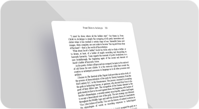 From Cliche to Archetype 321 “I must lie down where all the ladders start.” Our theme in From Cliché to Archetype is simply the scrapping of all poetic innovation and cliché when it has reached a certain stage of use. Masterful forms and images, when complete, are cast aside to become “the rag-and-bone shop of the heart”—that is, the world of the archetype. What about Jacob’s ladder? Jacob lay down only to climb a ladder, or to dream, at least, of a ladder of angels ascending and descending in heavenly hierarchy. Yeats regards the moment of poetic breakdown as a new breakthrough, the beginning again of the ascent and descent of Jacob’s ladder of heavenly vision. As his poetic clichés collapse and are scrapped, he turns to the retrieval of old forms for new clichés. It is the worn-out cliché that reveals the creative or archetypal processes in language as in all other processes and artifacts. J.Seznec in The Survival of the Pagan Gods provides an entire study of the process of desacralization of the gods by literary humanism from the third century B.C. to the Renaissance. The process consisted in accepting the gods as technology heroes, or geniuses, who devoted their lives to the good of their fellow men. The recognition of the human element in the gods tended at first to be used against them, but beginning with Isadore of Seville’s Etymologiae, a seventh-century encyclopedia, authors had begun to accept a desacralized view of the gods. The new strategy was followed throughout the Middle Ages and until the Scienza Nuova of Giambattista Vico. Like Isidore of Seville, Vico saw the history of cultural evolution in the etymologies of words as recording responses to technological innovations. The encyclopedic tradition of classical rhetoric accepted the gods on a multileveled exegesis basis. This “grammatical” method of literary analysis via the figurative, tropological (moral), and anagogical (high mysteries) retained the old tribal and magical tradition of the “gods” approach by literary techniques of retrieval. It follows that the sixteenth- and seventeenth-century Puritans, in rejecting the multi-leveled literary approach also rejected the pagan “gods.” The insistence on the single level of literal interpretation is the one that led Milton to toss the whole caboodle of pagan deities into his Hell, just as Plato had tossed all the multi-leveled phenomena of the world into his cave. There may be something odd about the Paleolithic cave culture being dismissed by Plato into a Spenserian Cave of Error. But just as the plenary retrieval techniques of Gutenberg print created the Puritan ideal of a recovery of a purified and primitive Christianity, so the modern anthropologist, using plenary methods of retrieval, has rejected the traditional humanistic or literary view of the gods in favor of a complete resacralizing of pagan art and ritual. The resacralizing of the ancient clichés of ancient technology by anthropologists places the literary archetypalist in a very embarrassing position. The archetypalist, having come to regard the gods as a neutered or “spayed” bunch of moralized