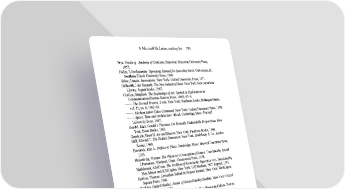 A Marshall McLuhan reading list 394 Frye, Northrop. Anatomy of Criticism. Princeton: Princeton University Press, 1957. Fuller, R.Buckminster. Operating Manual for Spaceship Earth. Carbondale, Ill.: Southern Illinois University Press, 1969. Gabor, Dennis. Innovations. New York: Oxford University Press, 1971. Galbraith, John Kenneth. The New Industrial State. New York: New American Library, Signet Books, 1967. Giedion, Siegfried. The Beginnings of Art. Quoted in Explorations in Communication (Boston: Beacon Press, 1960), 65–6. ——. The Eternal Present. 2 vols. New York: Pantheon Books, Bollingen Series, vol. 35, no. 6, 1962–64. ——. Mechanization Takes Command. New York: Oxford University Press, 1948. ——. Space, Time and Architecture. 4th ed. Cambridge, Mass.: Harvard University Press, 1967. Goedel, Kurt. Goedel’s Theorem: On Formally Undecidable Propositions. New York: Basic Books, 1963. Gombrich, Ernst H. Art and Illusion. New York: Pantheon Books, 1960. Hall, Edward T. The Hidden Dimension. New York: Doubleday & Co., Anchor Books, 1969. Havelock, Eric A. Preface to Plato. Cambridge, Mass.: Harvard University Press, 1963. Heisenberg, Werner. The Physicist’s Conception of Nature. Translated by Arnold J.Pomerans. Westport, Conn.: Greenwood Press, 1958. Hildebrand, Adolf von. The Problem of Form in the Figurative Arts. Translated by Max Meyer and R.M.Ogden. New York: G.E.Stechert, 1907. Reprint, 1945. Hobbes, Thomas. Leviathan. Edited by Francis Randall. New York: Washington Square Press, 1969. Hopkins, Gerard Manley. Poems of Gerard Manley Hopkins. New York: Oxford University Press, 1950. Huizinga, Johan. Homo Ludens: A Study of the Play Element in Culture. Boston: Beacon Press, 1955. I Ching. Translated by R.Wilhelm and C.F.Baynes. London: Routledge & Kegan Paul, 1951. Innis, Harold. The Bias of Communication. Toronto: University of Toronto Press, 1951. ——. Empire and Communications. Oxford: University of Oxford Press, 1950. ——. Essays in Canadian Economic History. Toronto: University of Toronto Press, 1956. ——. The Fur Trade in Canada. New Haven: Yale University Press, 1930. Ivins, William, Jr. Art and Geometry: A Study in Space Intuitions. Cambridge, Mass.: Harvard University Press, 1946. ——. Prints and Visual Communication. London: Routledge & Kegan Paul, 1953. Jacobs, Jane. The Economy of Cities. New York: Random House, 1969. James, William. The Principles of Psychology. 2 vols. 1890. New York: Dover Publications, n.d. Joyce, James. Finnegans Wake. London: Faber & Faber, 1939. ——. Ulysses. New York Modern Library, 1934; New York: Random House, 1961. Kepes, Gyorgy. The Language of Vision. Chicago: Paul Theobald, 1939. Klee, Paul. The Pedagogical Sketchbook. Translated by Sibyl Moholy-Nagy. London: Faber & Faber, 1953. ——. The Thinking Eye. N.p.: George Wittenborn, 1961.