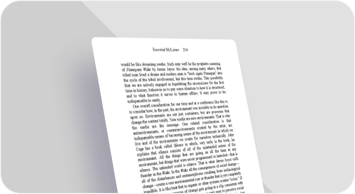 Essential McLuhan 214 would be like dreaming awake. Such may well be the prophetic meaning of Finnegans Wake by James Joyce: his idea, among many others, that tribal man lived a dream and modern man is “back again Finnegan” into the cycle of the tribal involvement, but this time awake. This possibility that we are actively engaged in liquidating the unconscious for the first time in history, behooves us to pay some attention to how it is structured, and to what function it serves in human affairs. It may prove to be indispensable to sanity. One overall consideration for our time and at a conference like this is to consider how, in the past, the environment was invisible in its operation upon us. Environments are not just containers, but are processes that change the content totally. New media are new environments. That is why the media are the message. One related consideration is that antienvironments, or counterenvironments created by the artist, are indispensable means of becoming aware of the environment in which we live and of the environments we create for ourselves technically. John Cage has a book called Silence in which, very early in the book, he explains that silence consists of all of the unintended noises of the environment. All the things that are going on all the time in any environment, but things that were never programmed or intended—that is silence. The unheeded world is silence. That is what James Joyce calls thunder in the Wake. In the Wake all the consequences of social change— all of the disturbances and metamorphoses resulting from technological change—create a vast environmental roar or thunder that is yet completely inaudible. It is like heat that in organic or other systems creates “noise.” If the environment or process of change gets going at a clip consistent with electronic information movement, it becomes very easy to perceive social patterns for the first time in human history. In the pre-Electric Age patterns were imperceptible because change occurred just slowly enough to be invisible. Was it Bertrand Russell who asked, if we were in a bath whose temperature rose half a degree an hour, how would we know when to scream? The pattern recognition that is quite impossible during processes of slow change, becomes quite easy when the same changes are speeded up even to movie or cinematic levels. So, the artist, as a creator of antienvironments, or counterenvironments, created to permit perception of environments, has a very peculiar role in our society. The artist as a maker of antienvironments becomes the enemy in society. He doesn’t seem to be very well adjusted. He does not accept the environment with all its brainwashing functions with any passivity whatever; he just turns upon it and reflects his antienvironmental perceptions upon it. The artist, for the past century, has increasingly fused or merged with the criminal in popular estimation, as he has become antienvironmental. Since Baudelaire, the artist, the sleuth—the Sherlock Holmes type, the James Bond type, the Raymond Chandler-Marlowe type—these men have turned a vision onto society that is very antienvironmental, very self-conscious, and the artist has mysteriously