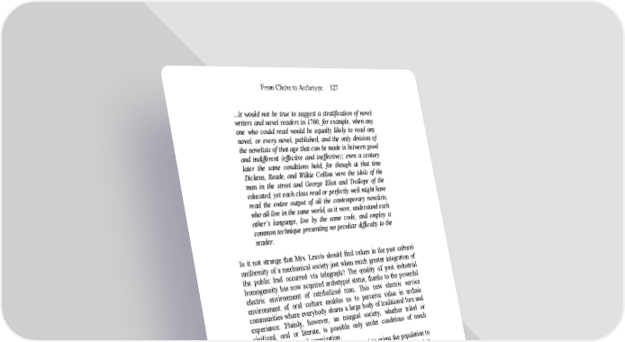 From Cliche to Archetype 327 …it would not be true to suggest a stratification of novel writers and novel readers in 1760, for example, when any one who could read would be equally likely to read any novel, or every novel, published, and the only division of the novelists of that age that can be made is between good and indifferent (effective and ineffective); even a century later the same conditions hold, for though at that time Dickens, Reade, and Wilkie Collins were the idols of the man in the street and George Eliot and Trollope of the educated, yet each class read or perfectly well might have read the entire output of all the contemporary novelists, who all live in the same world, as it were, understand each other’s language, live by the same code, and employ a common technique presenting no peculiar difficulty to the reader. Is it not strange that Mrs. Leavis should find values in the past cultural uniformity of a mechanical society just when much greater integration of the public had occurred via telegraph? The quality of past industrial homogeneity has now acquired archetypal status, thanks to the powerful electric environment of retribalized man. This new electric service environment of oral culture enables us to perceive value in archaic communities where everybody shares a large body of traditional lore and experience. Plainly, however, an integral society, whether tribal or civilized, oral or literate, is possible only under conditions of much continuity of external organization. The function of art in a tribal society is not to orient the population to novelty but to merge it with the cosmos. Value does not inhere in art as object but in its power to educate the perceptions. In a homogeneous mechanized society, the individualist role of the training of perception scarcely exists. The primitive role of art of serving as consolidator and as liaison with the hidden cosmic powers again comes to the fore in popular art. Paradoxically, it is the most vulgar art that has the most in common with the integral societies of preliterate man. It is unfortunate, therefore, to invoke homogeneity as a distinct excellence of so civilized a society as that of the eighteenth century. This merely tends to draw attention to the process of typographic fragmentation by which the eighteenth century achieved its homogeneity. Such was the process by which uniform prices and extensive markets were created. The same market processes were extended to literature. They had begun in the first place in print technology, without which neither industry nor markets could exist. It is not very satisfactory to concur in one part of this process and to reject the rest. Regarding Tragedy and Comedy, any factor that alienates an individual from his environment archetypalizes him as tragic. Job loses his possessions and his family. Any individual bereaved by a traffic accident
