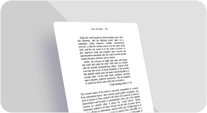 Laws of media 381 Today the road beyond its break boundary turns cities into highways, and the highway proper takes on a continuous urban character. Another characteristic reversal…is that the country ceases to be the center of all work, and the city ceases to be the center of leisure. In fact, improved roads and transport have reversed the ancient pattern and made cities the centers of work and the country the place of leisure and recreation. Earlier, the increase of traffic that came with money and roads had ended the static tribal state (as Toynbee calls the nomadic food-gathering culture). Typical of the reversing that occurs at break boundaries is the paradox that nomadic mobile man, the hunter and food-gatherer is socially static. On the other hand, sedentary, specialist man is dynamic, explosive, progressive. The new magnetic or world city will be static and iconic or inclusive. (Understanding Media, 37–8) The reversal aspect of the tetrad is succinctly exemplified in a maxim from information theory: data overload equals pattern recognition. Any word or process or form, pushed to the limits of its potential, reverses its characteristics and becomes a complementary form, just as the airplane reverses its controls when it passes the “sound barrier.” Money (hardware), pushed to its limit, reverses into the lack of money, that is, credit (software or information), and the credit card. At high speed or in great quantity, the motor car reverts to nautical form, and traffic (or a crowd) “flows.” By repetition, an archetype can become a cliché again; or an individual man a crowd (with no private, but rather corporate, identity). Breakdown becomes breakthrough. In “‘Labour-Saving’ Means More Work,” Ruth S.Cowan points to the reversal that every labour-saving device is a new and larger form of work in disguise. “Homemakers,” she writes, “log about the same number of hours at their work as their grandmothers did in 1910, 1920, and 1930. The average homemaker, now armed with dozens of motors and thousands of electronic chips, can still spend up to 50 hours a week doing housework” (page 77). All four aspects of the tetrad can be found in her discussion of the vacuum cleaner, which is a grotesque extension of lungs: For decades prior to the turn of the century, inventors had been trying to create a carpet-cleaning system that would improve on the semiannual ritual of hauling rugs outside and beating them. But the vacuum cleaner’s introduction coincided almost precisely with the virtual disappearance of the domestic servant. For the most economically comfortable segment of the population, this meant one thing: The female head of