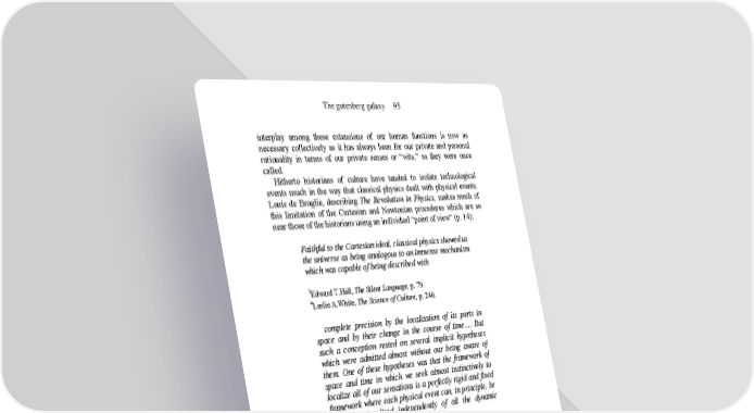 The gutenberg galaxy 95 interplay among these extensions of our human functions is now as necessary collectively as it has always been for our private and personal rationality in terms of our private senses or “wits,” as they were once called. Hitherto historians of culture have tended to isolate technological events much in the way that classical physics dealt with physical events. Louis de Broglie, describing The Revolution in Physics, makes much of this limitation of the Cartesian and Newtonian procedures which are so near those of the historians using an individual “point of view” (p. 14): Faithful to the Cartesian ideal, classical physics showed us the universe as being analogous to an immense mechanism which was capable of being described with 3 Edward T.Hall, The Silent Language, p. 79. 4 Leslie A.White, The Science of Culture, p. 240. complete precision by the localization of its parts in space and by their change in the course of time…. But such a conception rested on several implicit hypotheses which were admitted almost without our being aware of them. One of these hypotheses was that the framework of space and time in which we seek almost instinctively to localize all of our sensations is a perfectly rigid and fixed framework where each physical event can, in principle, be rigorously localized independently of all the dynamic processes which are going on around it. We shall see how not only Cartesian but Euclidean perceptions are constituted by the phonetic alphabet. And the revolution that de Broglie describes is a derivative not of the alphabet but of the telegraph and of radio. J.Z.Young, a biologist, makes the same point as de Broglie. Having explained that electricity is not a thing that “flows” but is “the condition we observe when there are certain spatial relations between things,” he explains (p. 111): Something similar has happened as physicists have devised ways of measuring very small distances. It has been found no longer possible to use the old model of supposing that what was being done was to divide up something called matter into a series of bits, each with definite properties called size, weight, or position. Physicists do not now say that matter ‘is made’ of bodies called atoms, protons, electrons, and so on. What they have done is to give up the materialist method of describing their observations in terms of something made as by a human process of