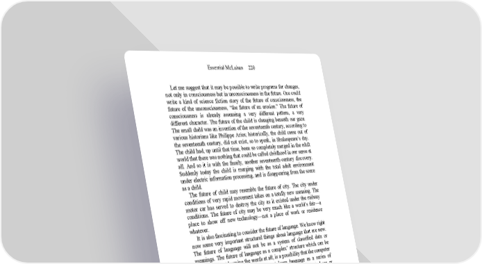 Essential McLuhan 220 Let me suggest that it may be possible to write programs for changes, not only in consciousness but in unconsciousness in the future. One could write a kind of science fiction story of the future of consciousness, the future of the unconsciousness, “the future of an erosion.” The future of consciousness is already assuming a very different pattern, a very different character. The future of the child is changing beneath our gaze. The small child was an invention of the seventeenth century, according to various historians like Philippe Aries; historically, the child came out of the seventeenth century, did not exist, so to speak, in Shakespeare’s day. The child had, up until that time, been so completely merged in the adult world that there was nothing that could be called childhood in our sense at all. And so it is with the family, another seventeenth-century discovery. Suddenly today the child is merging with the total adult environment under electric information processing, and is disappearing from the scene as a child. The future of child may resemble the future of city. The city under conditions of very rapid movement takes on a totally new meaning. The motor car has served to destroy the city as it existed under the railway conditions. The future of city may be very much like a world’s fair—a place to show off new technology—not a place of work or residence whatever. It is also fascinating to consider the future of language. We know right now some very important structural things about language that are new. The future of language will not be as a system of classified data or meanings. The future of language as a complex’ structure which can be learned without learning the words at all, is a possibility that the computer presents increasingly. A child does not learn language as a series of meanings of words. He learns language as he learns to walk, or to hear, or to see. He learns language as a way of feeling and exploring his environment. Therefore, he is totally involved. He learns very fast because of this enormous sensuous involvement and the resulting motivation. It will be possible in this generation, I hope, to program the environment in such a way that we can learn a second language as we learned our mother tongue, rapidly and totally, as a means of perception and of discovery. The future of language presents the possibility of a world without words, a wordless, intuitive world, like a technological extension of the action of consciousness. I had a friend visiting from Harvard the other day who said: “You see, my generation does not have goals.” (He is a young architect.) “We are not goaloriented. We just want to know what is going on.” Now that means not a point of view but total ecological awareness. I was reading aloud from Finnegans Wake for a moment, and he said: “When you take L.S.D., the whole world takes on a multidimensional and multisensuous character of discovery, and when I listened to Finnegans Wake I got the same experience as L.S.D.” (Perhaps Finnegan would be safer, and also more rewarding.)