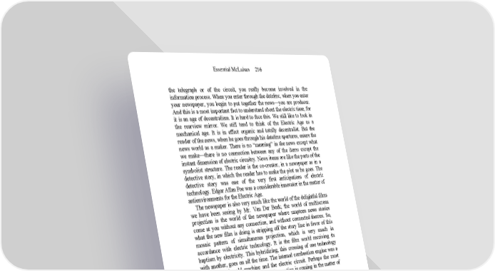 Essential McLuhan 216 the telegraph or of the circuit, you really become involved in the information process. When you enter through the datelinc, when you enter your newspaper, you begin to put together the news—you are producer. And this is a most important fact to understand about the electric time, for it is an age of decentralism. It is hard to face this. We still like to look in the rearview mirror. We still tend to think of the Electric Age as a mechanical age. It is in effect organic and totally decentralist. But the reader of the news, when he goes through his dateline apertures, enters the news world as a maker. There is no “meaning” in the news except what we make—there is no connection between any of the items except the instant dimension of electric circuitry. News items are like the parts of the symbolist structure. The reader is the co-creator, in a newspaper as in a detective story, in which the reader has to make the plot as he goes. The detective story was one of the very first anticipations of electric technology. Edgar Allan Poe was a considerable innovator in the matter of antienvironments for the Electric Age. The newspaper is also very much like the world of the delightful films we have been seeing by Mr. Van Der Beek; the world of multiscreen projection is the world of the newspaper where umpteen news stories come at you without any connection, and without connected themes. So, what the new film is doing is stripping off the story line in favor of this mosaic pattern of simultaneous projection, which is very much in accordance with electric technology. It is the film world receiving its baptism by electricity. This hybridizing, this crossing of one technology with another, goes on all the time. The internal combustion engine was a wedding of the old machine and the electric circuit. Perhaps the most startling and most upsetting electric innovation is coming in the matter of xerox and xerography. Xerography is bringing a reign of terror into the world of publishing because it means that every reader can become both author and publisher. It totally decentralizes the long centralized publishing process. Authorship and readership alike can become production-oriented under xerography. Anybody can take any book apart, insert parts of other books and other materials of his own interest, and make his own book in a relatively fast time. Any teacher can take any ten textbooks on any subject and custom- make a different one by simply xeroxing a chapter from this one and a chapter from that one. The problem is copyrighting, and Congress is now pondering these problems—how to protect the old technology from the new technology by legislation. It will not succeed. There is no possible protection from technology except by technology. When you create a new environment with one phase of a technology, you have to create an antienvironment with the next. But xerography is electricity invading the world of typography, and it means a total revolution in this old sphere, or this old technology, a revolution that is being felt in the classroom itself. I invite you to consider that perhaps the best way of estimating the impact of any new environmental technology is to notice what happens to