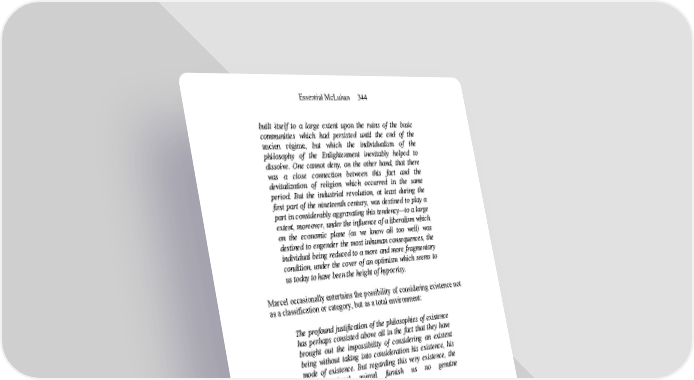 Essential McLuhan 344 built itself to a large extent upon the ruins of the basic communities which had persisted until the end of the ancien régime, but which the individualism of the philosophy of the Enlightenment inevitably helped to dissolve. One cannot deny, on the other hand, that there was a close connection between this fact and the devitalization of religion which occurred in the same period. But the industrial revolution, at least during the first part of the nineteenth century, was destined to play a part in considerably aggravating this tendency—to a large extent, moreover, under the influence of a liberalism which on the economic plane (as we know all too well) was destined to engender the most inhuman consequences, the individual being reduced to a more and more fragmentary condition, under the cover of an optimism which seems to us today to have been the height of hypocrisy. Marcel occasionally entertains the possibility of considering existence not as a classification or category, but as a total environment: The profound justification of the philosophies of existence has perhaps consisted above all in the fact that they have brought out the impossibility of considering an existent being without taking into consideration his existence, his mode of existence. But regarding this very existence, the words rational animal furnish us no genuine enlightenment. But in general he is aware of the futility of history. In the electric age, however, history no longer presents itself as a perspective of continuous visual space, but as an all-at-once and simultaneous presence of all facets of the past. This is what T.S.Eliot calls “tradition” in his celebrated essay “Tradition and the Individual Talent.” Eliot’s concept seemed quite revolutionary in 1917, but it was in fact a report of an immediate and present reality. Awareness of all-at-once history or tradition goes with a correlative awareness of the present as modifying the entire past. It is this vision that is characteristic of the artistic perception which is necessarily concerned with making and change rather than with any point of view or any static position. The bourgeois nineteenth century referred only to those faces and features which were most strikingly visual in their tidiness and order. That world now persists in some degree in suburbia with the Educational Establishment as its sustaining bulwark. Antithetic to suburbia is the beatnik world, which in the nineteenth century was Bohemia. This is a world in which visual values play a very minor role. One hippie was heard to say, “I have no use for this Cromwell character. I’m a Cavalier!”