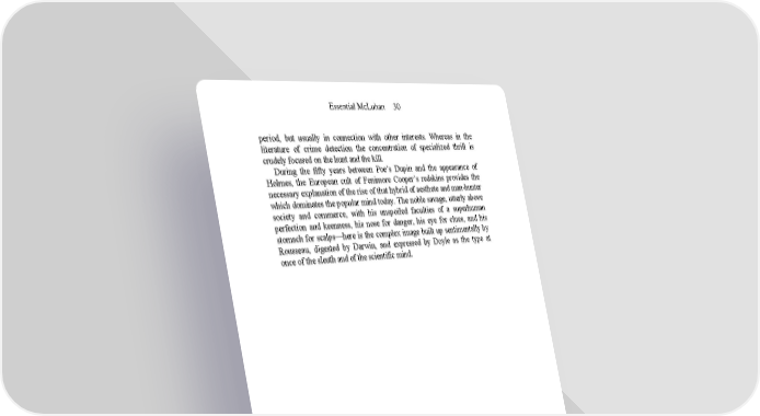 Essential McLuhan 30 period, but usually in connection with other interests. Whereas in the literature of crime detection the concentration of specialized thrill is crudely focused on the hunt and the kill. During the fifty years between Poe’s Dupin and the appearance of Holmes, the European cult of Fenimore Cooper’s redskins provides the necessary explanation of the rise of that hybrid of aesthete and man-hunter which dominates the popular mind today. The noble savage, utterly above society and commerce, with his unspoiled faculties of a superhuman perfection and keenness, his nose for danger, his eye for clues, and his stomach for scalps—here is the complex image built up sentimentally by Rousseau, digested by Darwin, and expressed by Doyle as the type at once of the sleuth and of the scientific mind.