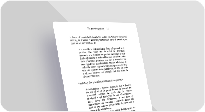 The gutenberg galaxy 133 in favour of mosaic field. And to this end he resorts to two-dimensional painting as a means of revealing the resonant depth of acoustic space. Here are his own words (p. 4): It is possible to distinguish two forms of approach to a problem. One, which may be called the theoretical approach, is to formulate the problem in relation to what is already known, to make additions or extensions on the basis of accepted principles, and then to proceed to test these hypotheses experimentally. Another, which may be called the mosaic approach, takes each problem for itself with little reference to the field in which it lies, and seeks to discover relations and principles that hold within the circumscribed area. Von Bekesy then proceeds to introduce his two paintings: A close analogy to these two approaches may be found in the field of art. In the period between the eleventh and seventeenth centuries the Arabs and the Persians developed a high mastery of the arts of description…. Later, during the Renaissance, a new form of representation was developed in which the attempt was made to give unity and perspective to the picture and to represent the atmosphere…. When in the field of science a great deal of progress has been made and most of the pertinent variables are known, a new problem may most readily be handled by trying to fit it into the existing framework. When, however, the framework is uncertain and the number of variables is large the mosaic approach is much the easier. The mosaic approach is not only “much the easier” in the study of the simultaneous which is the auditory field; it is the only relevant approach. For the “two-dimensional” mosaic or painting is the mode in which there is muting of the visual as such, in order that there may be maximal interplay among all of the senses. Such was the painterly strategy “since Cézanne,” to paint as if you held, rather than as if you saw, objects. A theory of cultural change is impossible without knowledge of the changing sense ratios effected by various externalizations of oursenses. It is very much worth dwelling on this matter, since we shall see that from the invention of the alphabet there has been a continuous drive in the Western world towards the separation of the senses, of functions, of