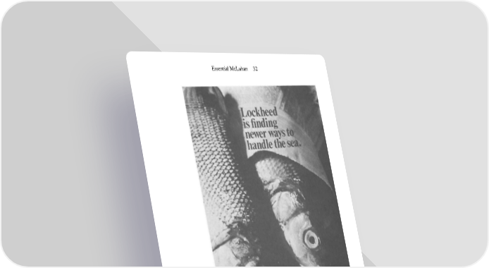 Essential McLuhan 32 WITHOUT CENTERS OR MARGINS The telegraph press mosaic is acoustic space as much as an electric circus. One touch of Nature makes the whole world tin.