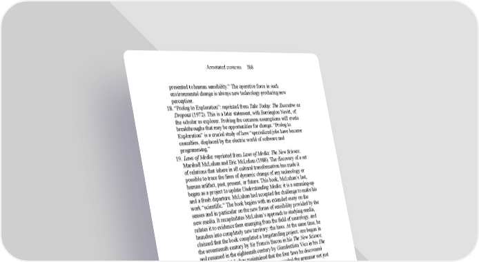 Annotated contents 388 presented to human sensibility.” The operative force in such environmental change is always new technology producing new perception. 18. “Prolog to Exploration”: reprinted from Take Today: The Executive as Dropout (1972). This is a later statement, with Barrington Nevitt, of the scholar as explorer. Probing the common assumptions will create breakthroughs that may be opportunities for change. “Prolog to Exploration” is a crucial study of how “specialized jobs have become casualties, displaced by the electric world of software and programming.” 19. Laws of Media: reprinted from Laws of Media: The New Science, Marshall McLuhan and Eric McLuhan (1988). The discovery of a set of relations that inhere in all cultural transformation has made it possible to trace the lines of dynamic change of any technology or human artifact, past, present, or future. This book, McLuhan’s last, began as a project to update Understanding Media; it is a summing-up and a fresh departure. McLuhan had accepted the challenge to make his work “scientific.” The book begins with an extended essay on the senses and in particular on the new forms of sensibility provided by the new media. It recapitulates McLuhan’s approach to studying media, relates it to evidence then emerging from the field of neurology, and launches into completely new territory: the laws. At the same time, he claimed that the book completed a longstanding project: one begun in the seventeenth century by Sir Francis Bacon in his The New Science, and resumed in the eighteenth century by Giambattista Vico in his The New Science. McLuhan maintained that the four laws he discovered were related in a particular way, one that revealed the grammar not just of media but every human innovation from levers and clubs to concertos, computers, cliches, and cosmology. The laws remove any basis for continuing to separate the arts and sciences since they both demonstrably belong to poetics. Because of what they reveal about human language, the laws and their implications challenge the validity of work done in a range of fields, including semiotics and linguistics. The laws apply, he found, to all things human, and exclusively to human innovation and utterance—creating implications for philosophy and the humanities. Here at last is a fullblown, mature “theory of communication,” paradoxically minus—because rooted in perception and observation—minus the “theory.”