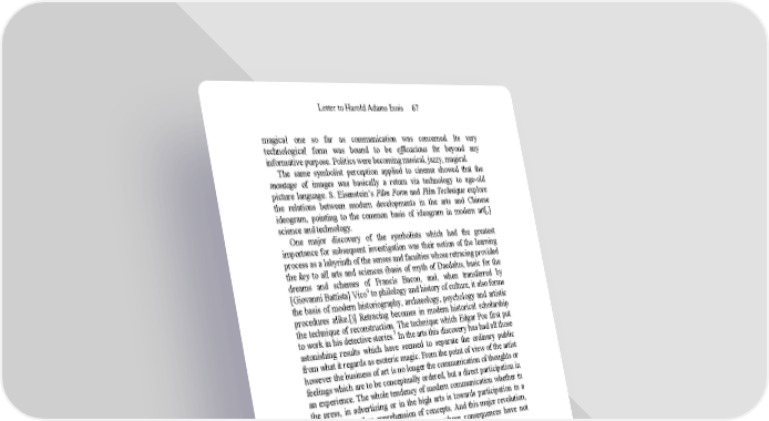 Letter to Harold Adams Innis 67 magical one so far as communication was concerned. Its very technological form was bound to be efficacious far beyond any informative purpose. Politics were becoming musical, jazzy, magical. The same symbolist perception applied to cinema showed that the montage of images was basically a return via technology to age-old picture language. S. Eisenstein’s Film Form and Film Technique explore the relations between modern developments in the arts and Chinese ideogram, pointing to the common basis of ideogram in modern art[,] science and technology. One major discovery of the symbolists which had the greatest importance for subsequent investigation was their notion of the learning process as a labyrinth of the senses and faculties whose retracing provided the key to all arts and sciences (basis of myth of Daedalus, basic for the dreams and schemes of Francis Bacon, and, when transferred by 4 to philology and history of culture, it also forms [Giovanni Battista] Vico the basis of modern historiography, archaeology, psychology and artistic procedures alike.[)] Retracing becomes in modern historical scholarship the technique of reconstruction. The technique which Edgar Poe first put 5 to work in his detective stories. In the arts this discovery has had all those astonishing results which have seemed to separate the ordinary public from what it regards as esoteric magic. From the point of view of the artist however the business of art is no longer the communication of thoughts or feelings which are to be conceptually ordered, but a direct participation in an experience. The whole tendency of modern communication whether in the press, in advertizing or in the high arts is towards participation in a process, rather than apprehension of concepts. And this major revolution, intimately linked to technology, is one whose consequences have not begun to be studied although they have begun to be felt. One immediate consequence, it seems to me, has been the decline of literature. The hypertrophy of letter-press, at once the cause and effect of universal literacy, has produced a spectacular decline of attention to the printed or written word. As you have shown in Empire and Communications, ages of literature Instrument spirituel” (p. 378 ff.) and “Deuil” (pp. 523–4). See the first article in The Mechanical Bride: “Front Page”, opposite a reproduction of the April 20, 1950 front page of The New York Times. Here McLuhan says that “any paper today is a collective work of art, a daily ‘book’ of industrial man, an Arabian night’s entertainment…. Notoriously it is the visual technique of a Picasso, the literary technique of James Joyce.” See also McLuhan’s essay “Joyce, Mallarmé and the Press” (which first appeared in The Sewanee Review, vol. 62, no. 1, Winter 1954) in Eugene McNamara, ed., The Interior Landscape: The Literary Criticism of Marshall McLuhan (1969). 4 For Vico, see page 339, note 3. 5 See page 271, note 4.