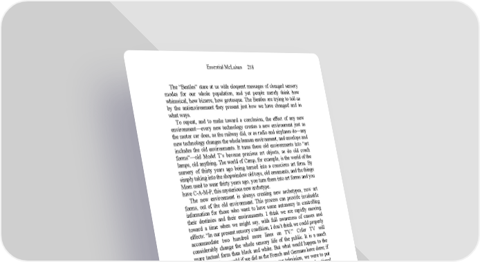 Essential McLuhan 218 The “Beatles” stare at us with eloquent messages of changed sensory modes for our whole population, and yet people merely think how whimsical, how bizarre, how grotesque. The Beatles are trying to tell us by the antienvironment they present just how we have changed and in what ways. To repeat, and to make toward a conclusion, the effect of any new environment—every new technology creates a new environment just as the motor car does, as the railway did, or as radio and airplanes do—any new technology changes the whole human environment, and envelops and includes the old environments. It turns these old environments into “art forms”—old Model T’s become precious art objects, as do old coach lamps, old anything. The world of Camp, for example, is the world of the nursery of thirty years ago being turned into a conscious art form. By simply taking into the shopwindow old toys, old ornaments, and the things Mom used to wear thirty years ago, you turn them into art forms and you have C-A-M-P, this mysterious new archetype. The new environment is always creating new archetypes, new art forms, out of the old environment. This process can provide invaluable information for those who want to have some autonomy in controlling their destinies and their environments. I think we are rapidly moving toward a time when we might say, with full awareness of causes and effects: “In our present sensory condition, I don’t think we could properly accommodate two hundred more lines on TV.” Color TV will considerably change the whole sensory life of the public. It is a much more tactual form than black and white. But what would happen to the North American world if we did as the French and Germans have done; if instead of four hundred and fifty lines on our television, we were to put eight hundred? The results might be most gratifying to the educational establishment. If we raised the visual intensity or the visual component of the TV image, it might serve enormously to ease the transition from the old mechanical age to the electronic age. What would be the chances of getting an experimental study of such a change in our time? I don’t know. Lindegren would say the chances were not good. Anything that is serious is out of bounds. I think it was David Riesman who said no social scientist would ever study anything important. To be scientific you must study the fragmental, the insignificant. How else can you give assurance of your precision and concentration? Perhaps this attitude explains why, in our world, we tend to substitute moral indignation for observation. Moral vehemence is proof positive of superior perception. For example, we now experience simultaneously the dropout and the teach-in. The two forms are correlative. They belong together. The teach-in represents an attempt to shift education from instruction to discovery, from brainwashing students to brainwashing instructors. It is a big dramatic reversal. Vietnam, as the content of the teach-in, is a very small, misleading Red Herring. It really has nothing to do with the teach-in as such anymore than with the