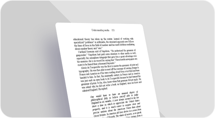 Understanding media 153 educational theory has taken up the matter. Instead of working with specialized “problems” in arithmetic, the structural approach now follows the lines of force in the field of number and has small children meditating about number theory and “sets.” Cardinal Newman said of Napoleon, “He understood the grammar of gunpowder.” Napoleon had paid some attention to other media as well, especially the semaphore telegraph that gave him a great advantage over his enemies. He is on record for saying that “Three hostile newspapers are more to be feared than a thousand bayonets.” Alexis de Tocqueville was the first to master the grammar of print and typography. He was thus able to read off the message of coming change in France and America as if he were reading aloud from a text that had been handed to him. In fact, the nineteenth century in France and in America was just such an open book to de Tocqueville because he had learned the grammar of print. So he, also, knew when that grammar did not apply. He was asked why he did not write a book on England, since he knew and admired England. He replied: One would have to have an unusual degree of philosophical folly to believe oneself able to judge England in six months. A year always seemed to me too short a time in which to appreciate the United States properly, and it is much easier to acquire clear and precise notions about the American Union than about Great Britain. In America all laws derive in a sense from the same line of thought. The whole of society, so to speak, is founded upon a single fact; everything springs from a simple principle. One could compare America to a forest pierced by a multitude of straight roads all converging on the same point. One has only to find the center and everything is revealed at a glance. But in England the paths run criss-cross, and it is only by travelling down each one of them that one can build up a picture of the whole. De Tocqueville, in earlier work on the French Revolution, had explained how it was the printed word that, achieving cultural saturation in the eighteenth century, had homogenized the French nation. Frenchmen were the same kind of people from north to south. The typographic principles of uniformity, continuity, and lineality had overlaid the complexities of ancient feudal and oral society. The Revolution was carried out by the new literati and lawyers. In England, however, such was the power of the ancient oral traditions of common law, backed by the medieval institution of Parliament, that no uniformity or continuity of the new visual print culture could take complete hold. The result was that the most important event in English