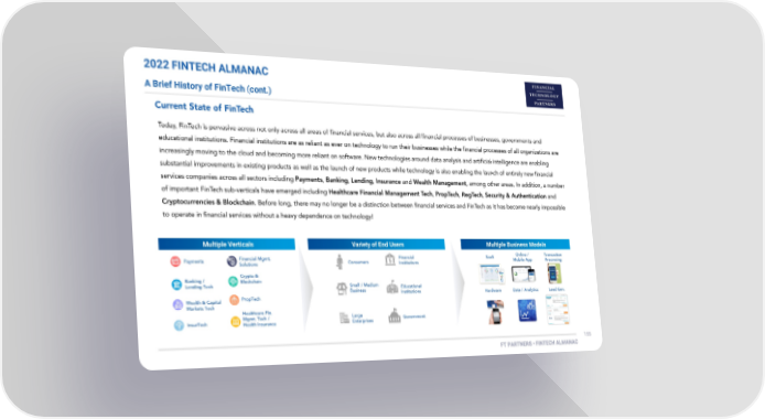 2022 FINTECH ALMANAC A Brief History of FinTech (cont.) Multiple Verticals Variety of End Users Multiple Business Models
