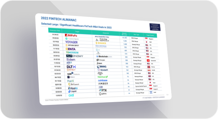 FT Partners 2022 FinTech Almanac Page 116 Page 1182022 FINTECH ALMANAC Selected Large / Significant Healthcare FinTech M&A Deals in 2022 Arisz Acquisition Corp. Thunder Bridge Capital Partners IV