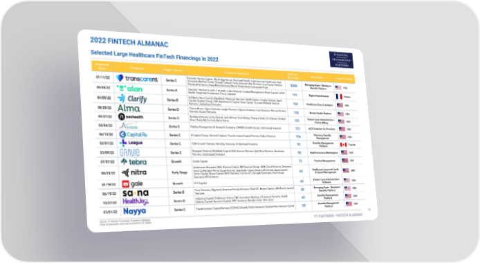 2022 FINTECH ALMANAC Selected Large Healthcare FinTech Financings in 2022 FT Partners 2022 FinTech Almanac Page 93 Page 95