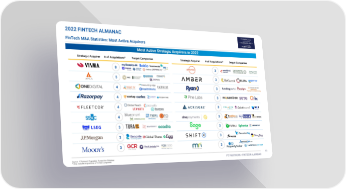 2022 FINTECH ALMANAC FinTech M&A Statistics: Most Active Acquirers Most Active Strategic Acquirers in 2022