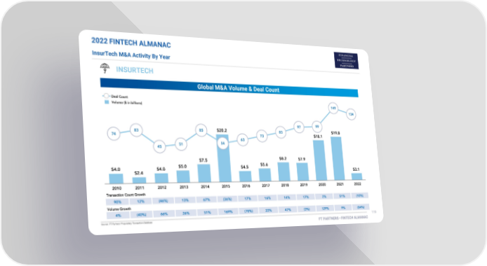 2022 FINTECH ALMANAC InsurTech M&A Activity By Year INSURTECH Global M&A Volume & Deal Count 160 140 120 100 80 60 40 20 - (20) (40)