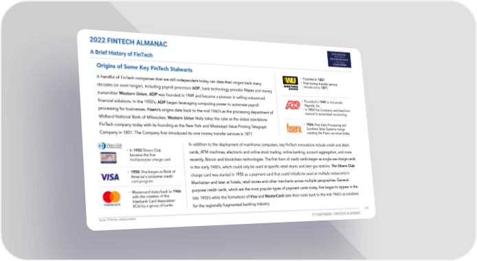 2022 FINTECH ALMANAC A Brief History of FinTech • • • • • • • • FT Partners 2022 FinTech Almanac Page 138 Page 140